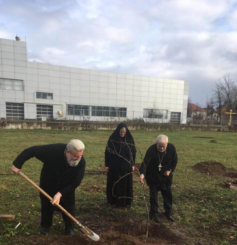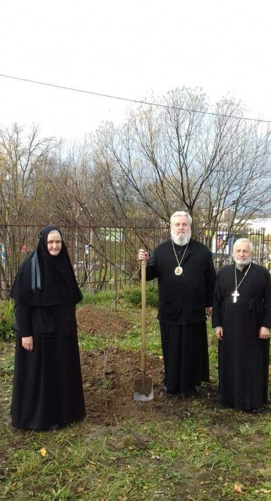 В первый день своего назначения Владыка Сергий посетил Свято-Тихвинское подворье обители, где принял участие в закладке нового плодового сада.