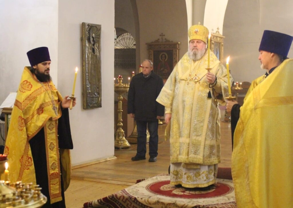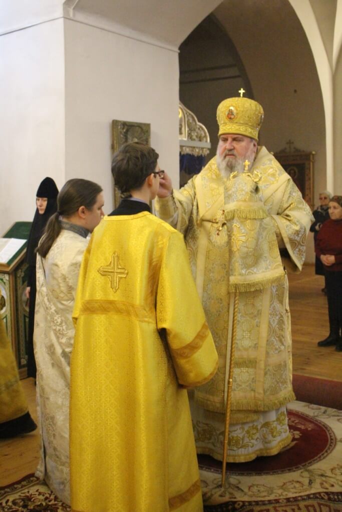 Правящему Архиерею сослужили: настоятель Свято-Троицкого кафедрального собора иерей Александр Курмелёв, клирик Свято-Троицкого кафедрального собора иерей Владимир Покатов.