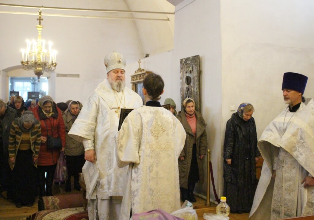 Затем Епископ Сергий обратился к прихожанам с Архипастырским словом, поздравив всех присутствующих на литургии с Димитриевской родительской субботой, и призвав на всех Божие благословение.