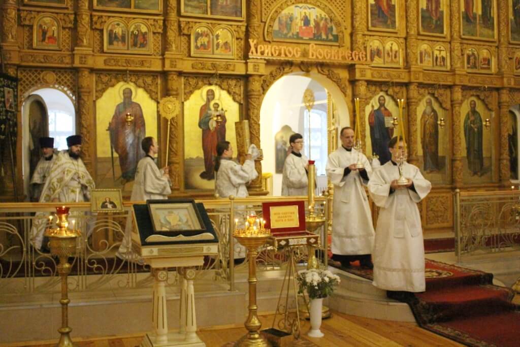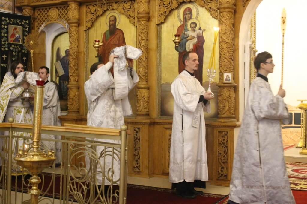Богослужебные песнопения звучали в исполнении хора кафедрального собора-регент Елена Платонова.