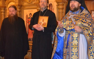 На Великом входе впервые вознеслись молитвы о нашем Преосвященном епископе, не только как правящем архиерее Вяземской епархии, но и как о Свято-Владимирской на истоке Днепра обители Священнархимандрите.