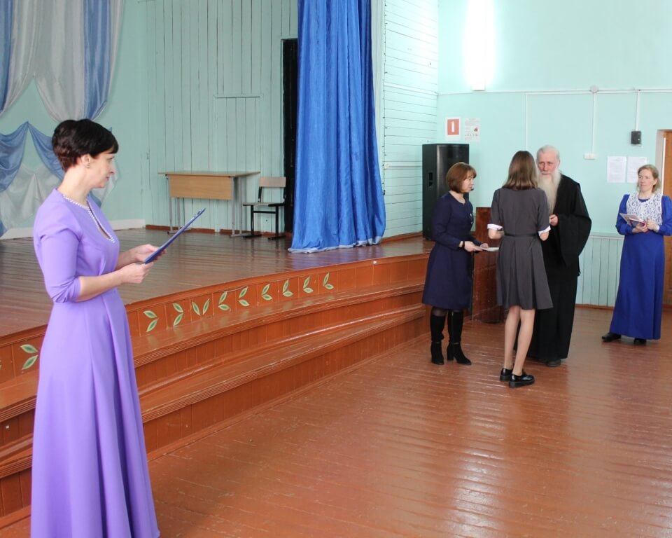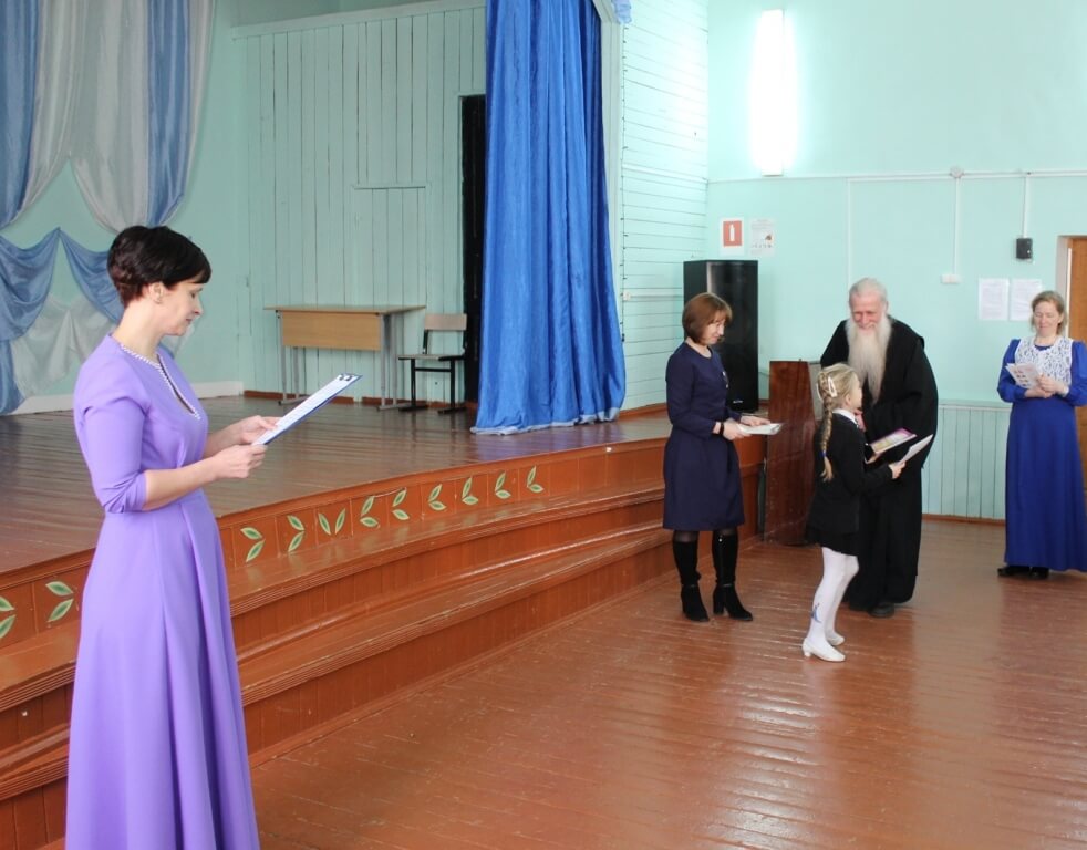 подарками от Отдела образования совместно с Благочинием всех кто потрудился и достиг успехов в проведение Рождественских чтений, руководителей , педагогов и учащихся образовательных учреждений Сычевского района. Среди учащихся награждены были победители конкурса чтецов «Поэзия для души» , проведенного в Доме детского творчества, участники всероссийского конкурса сочинений. Награждены педагоги, принявшие активное участие в духовно-нравственном воспитании подрастающих поколений: Трофимова Е. А., директор Юшинской основной школы, Фомина Е. В., младший научный сотрудник Сычевского Краеведческого музея , Лазарева Е. М., директор Средней школы №1, Иванов А. Ю., учитель ОБЖ Средней школы №2, Цыцерова О. А., библиотекарь Караваевской основной школы , Мишина Е. В. , учитель начальных классов Суторминской школы. Благодарственным письмом и памятным подарком от Благочиния награждена: начальник отдела по образованию МО «Сычевский район» Копорова А. А..