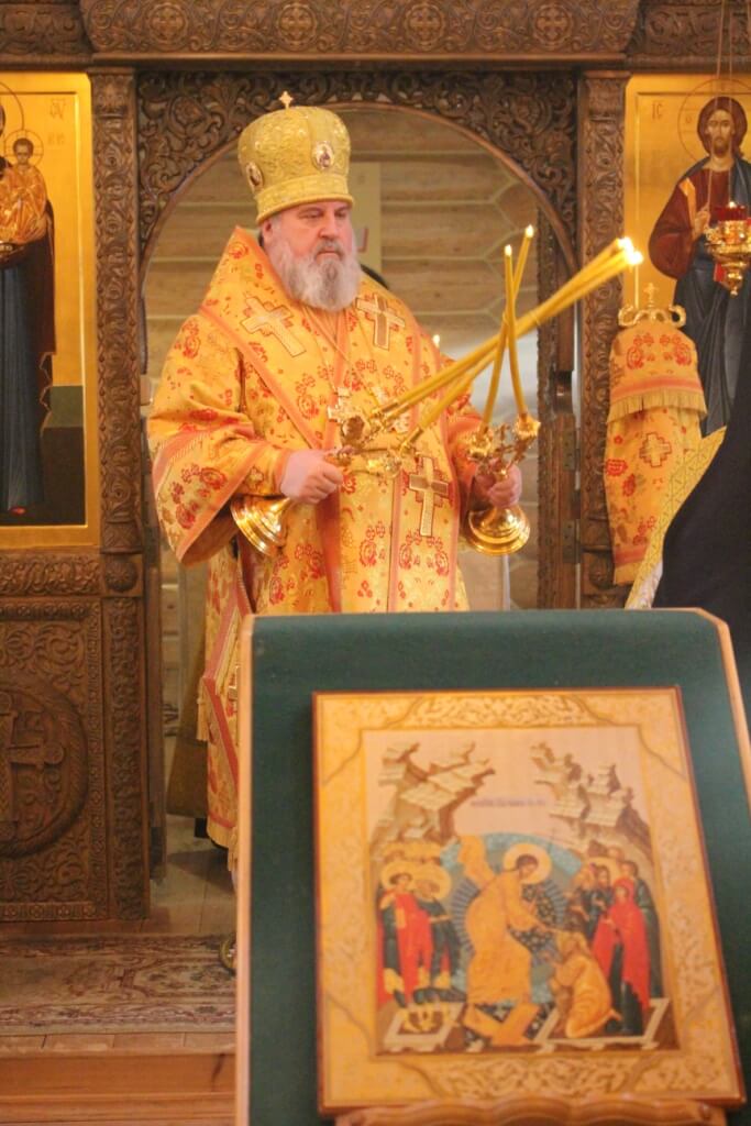 В завершении богослужения, Преосвященный епископ Сергий, обратился к духовенству и молящимся с архипастырским словом, поздравив всех присутствующих на литургии с воскресным днём.