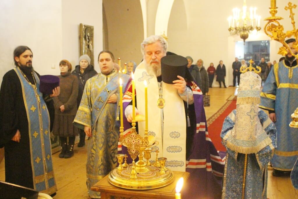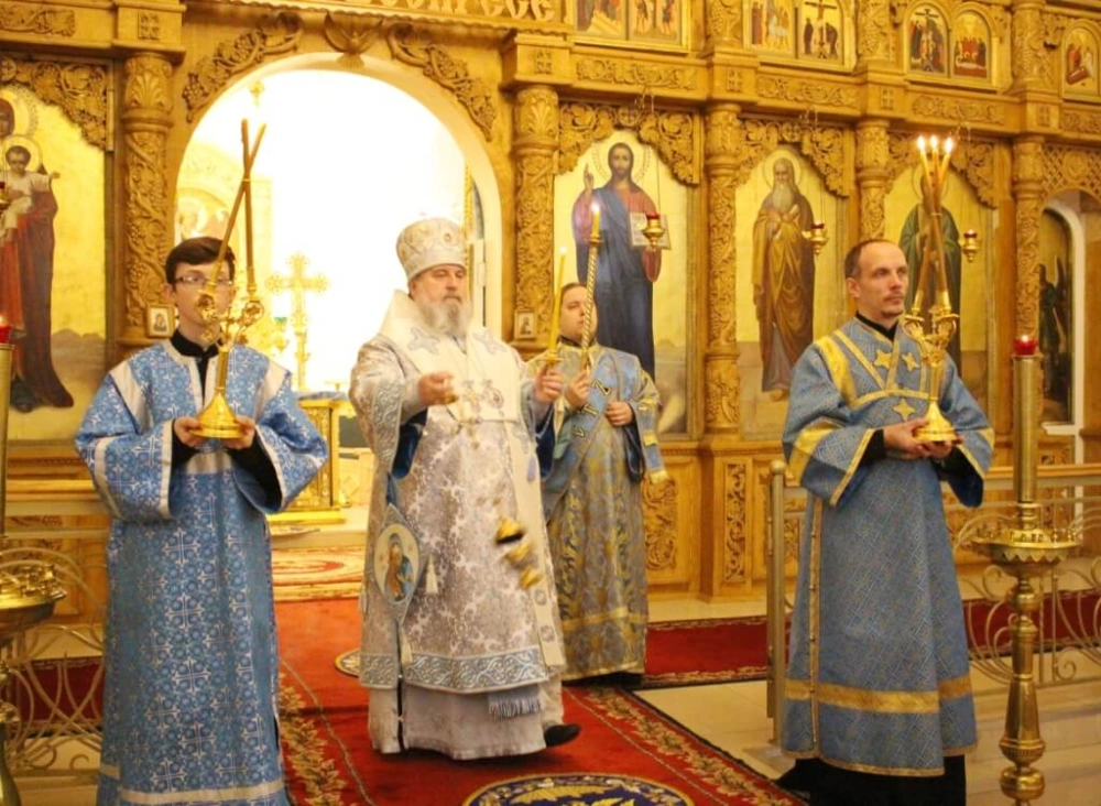В канун праздника Епископ Вяземский и Гагаринский Сергий совершил всенощное бдение в Свято-Троицком кафедральном соборе.