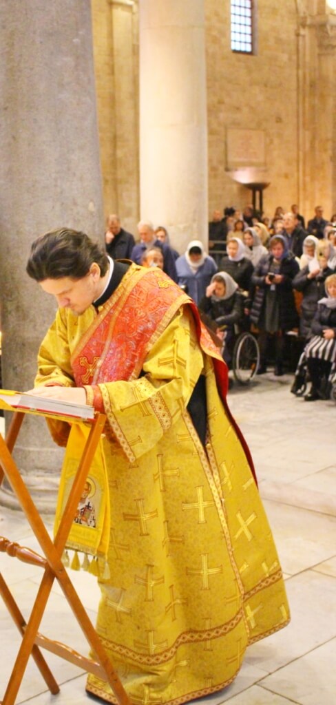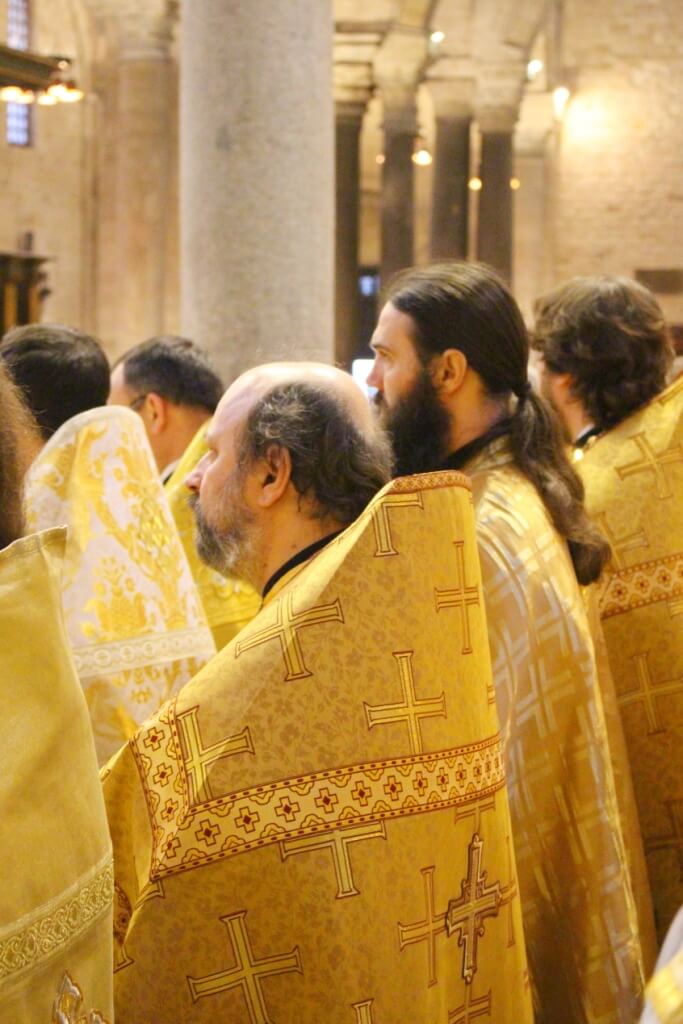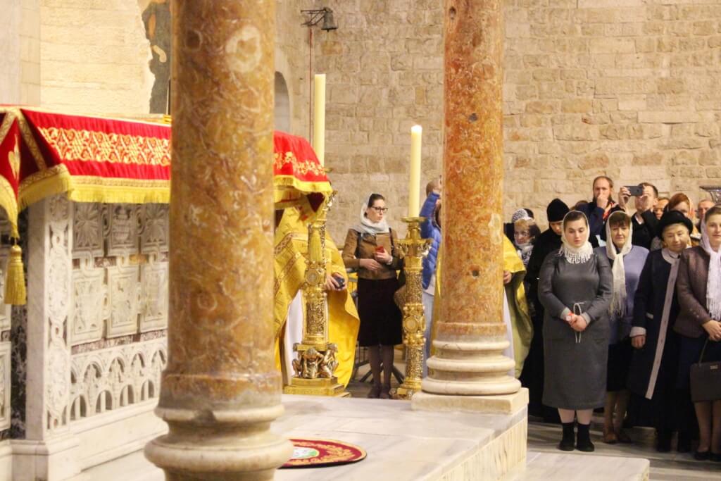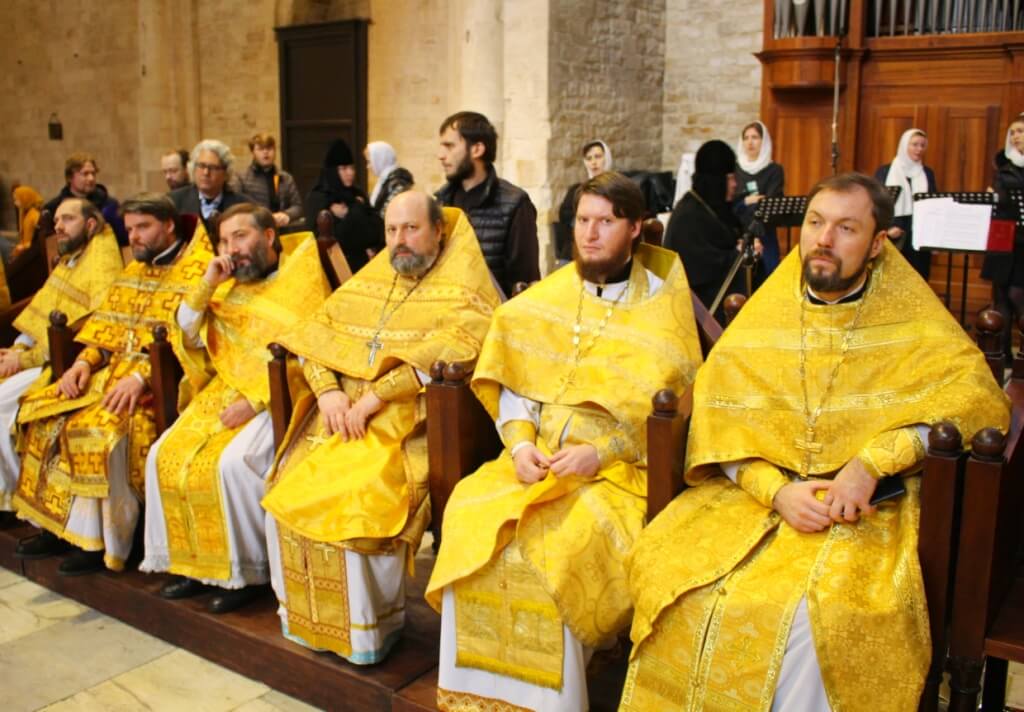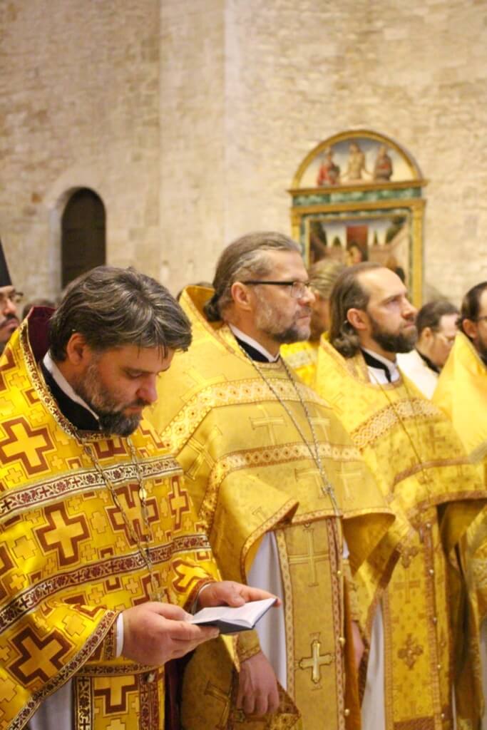 В завершение богослужения в крипте базилики был совершен молебен, затем архиереи, духовенство и миряне приложились к плите, покрывающей раку с мощами Николая Чудотворца.