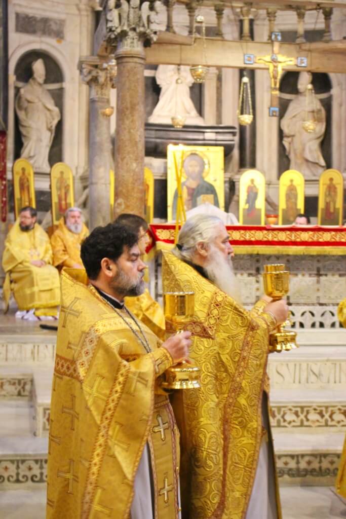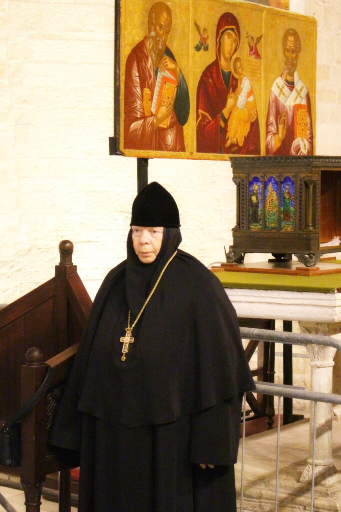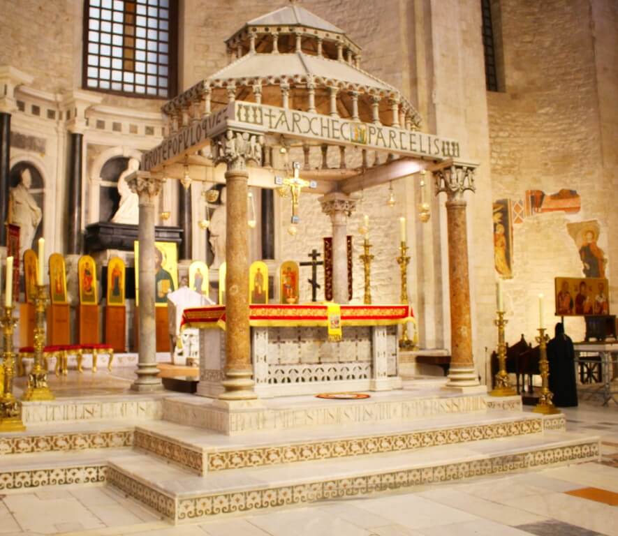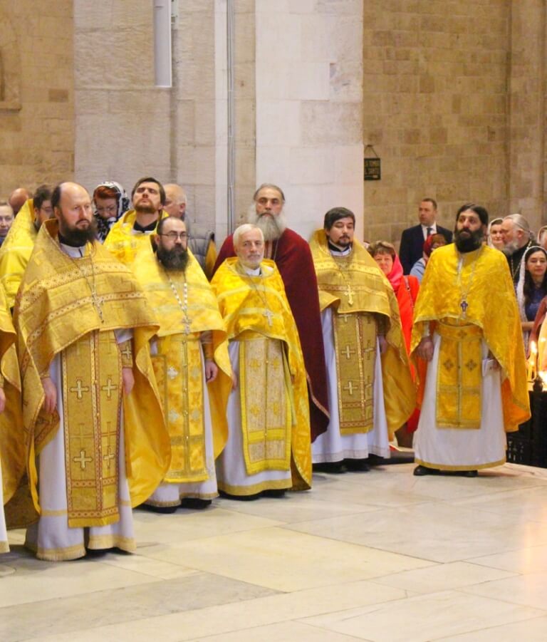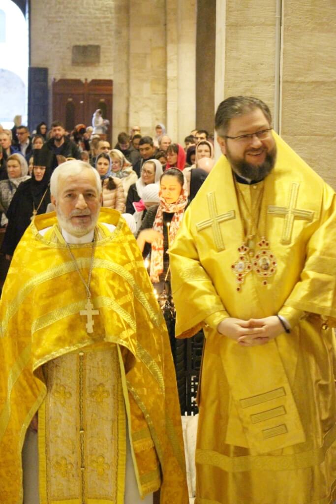 В завершение богослужения в крипте базилики был совершен молебен, затем архиереи, духовенство и миряне приложились к плите, покрывающей раку с мощами Николая Чудотворца.