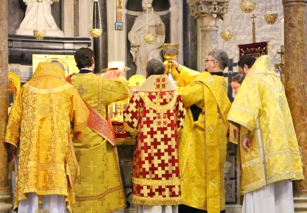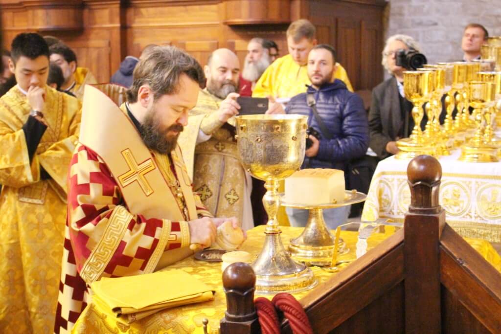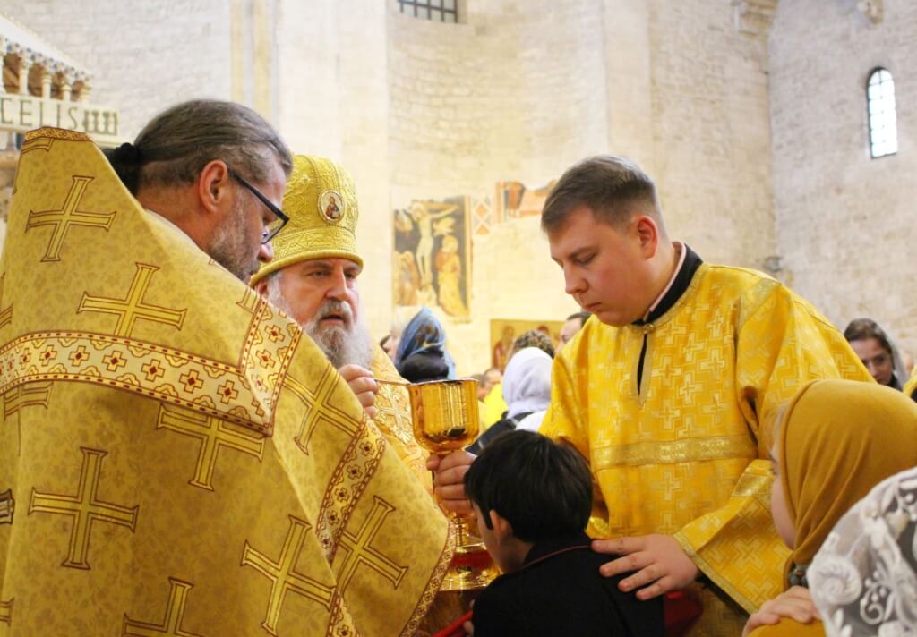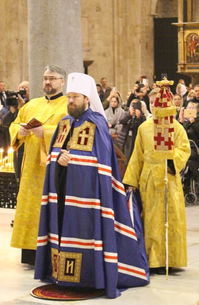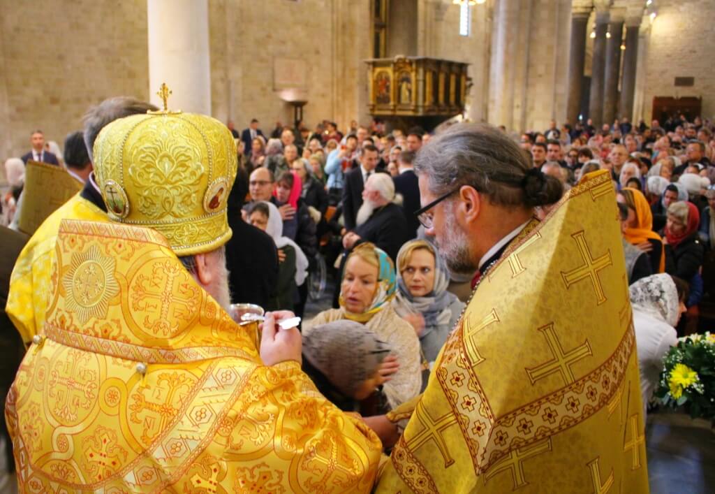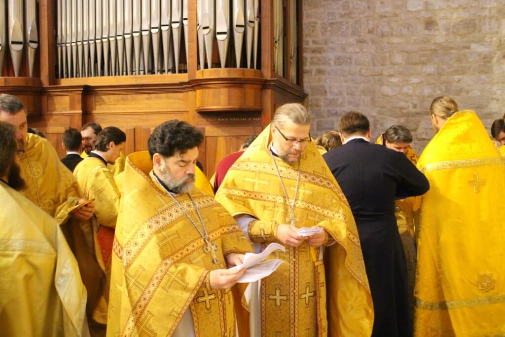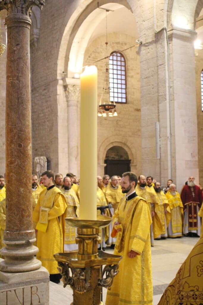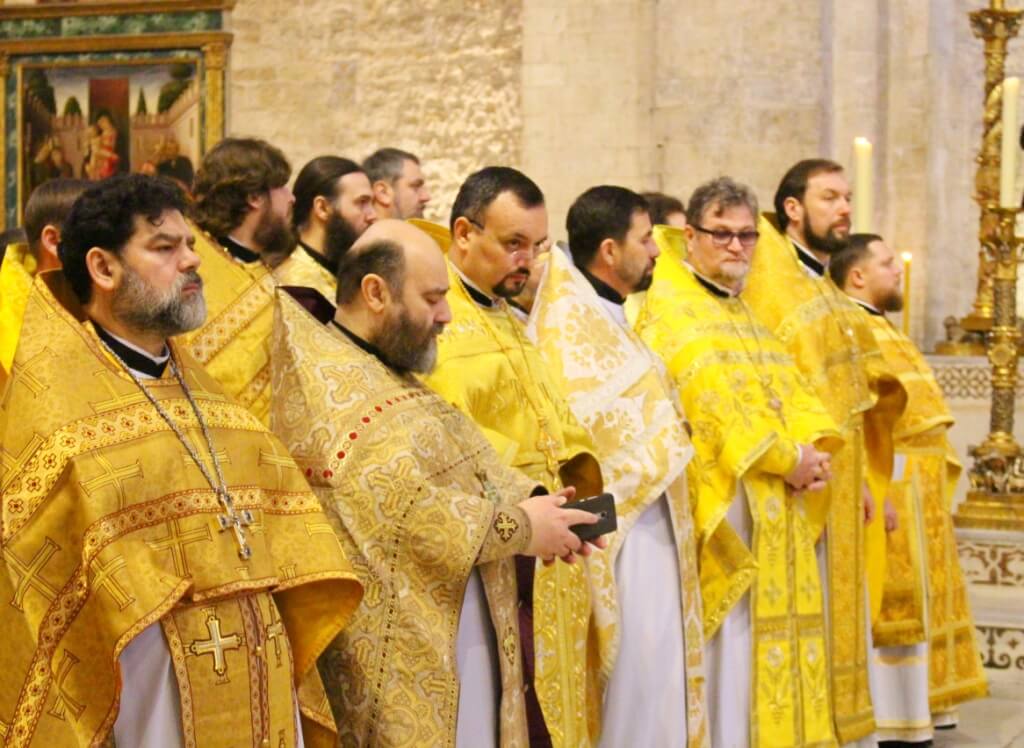 В верхнем храме базилики святителя Николая председатель ОВЦС возглавил Божественную литургию. Архипастырю сослужили митрополит Смоленский и Дорогобужский Исидор, епископ Вяземский и Гагаринский Сергий, председатель Синодального отдела по делам молодежи епископ Истринский Серафим и епископ Рославльский и Десногорский Мелетий, сонм духовенства из России, Украины, Беларуси, Молдовы и других стран, составляющих каноническую территорию Московского Патриархата.