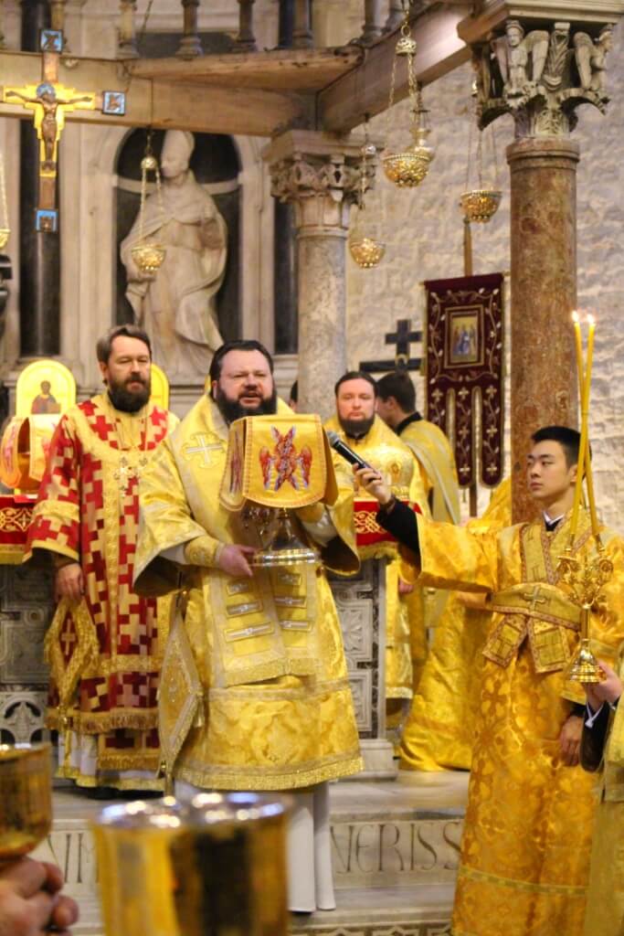 По окончании Литургии митрополит Иларион приветствовал всех присутствующих в храме словами «Христос Воскресе!» и поздравил с праздником самого почитаемого в Русской Церкви святого — Николая Чудотворца, который всегда слышит и исполняет обращенные к нему в молитве прошения.