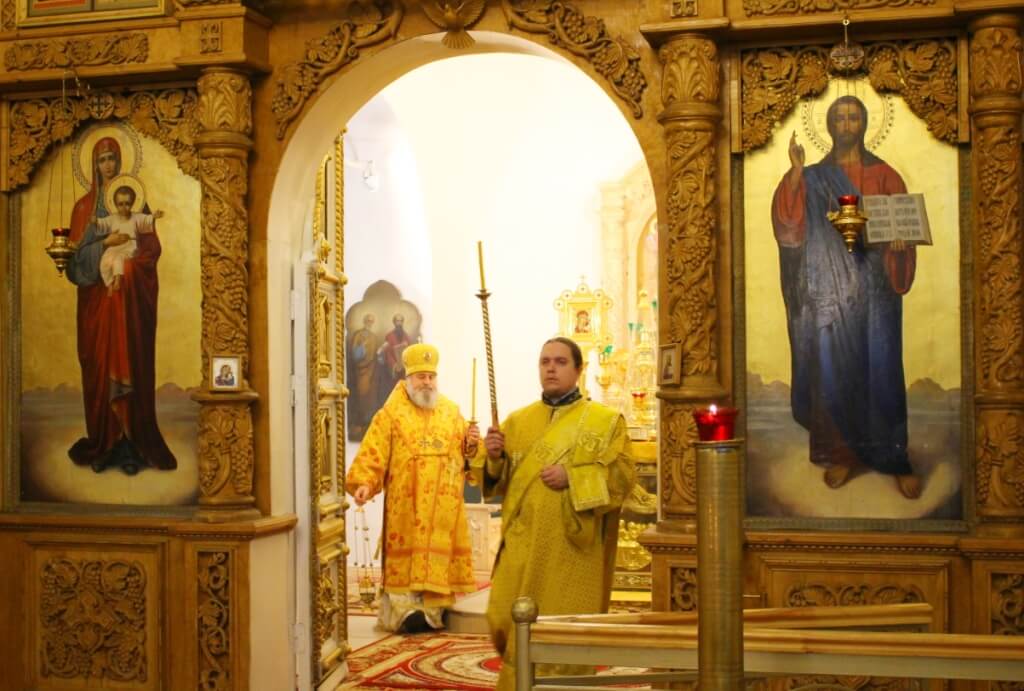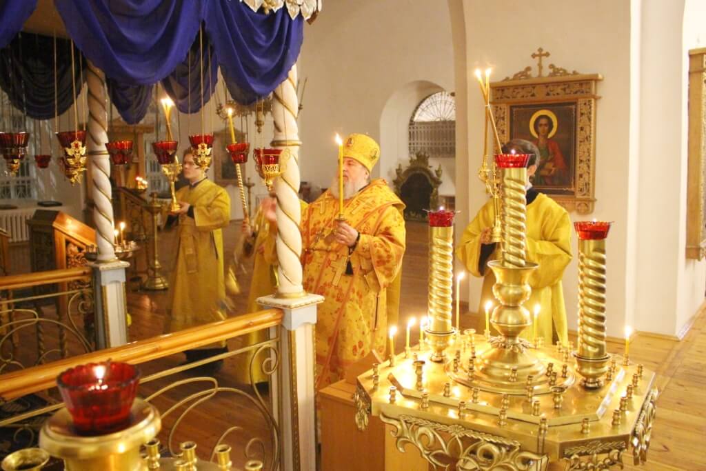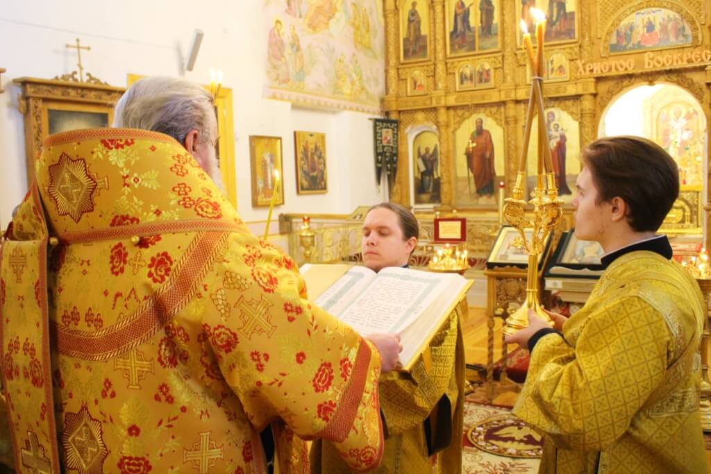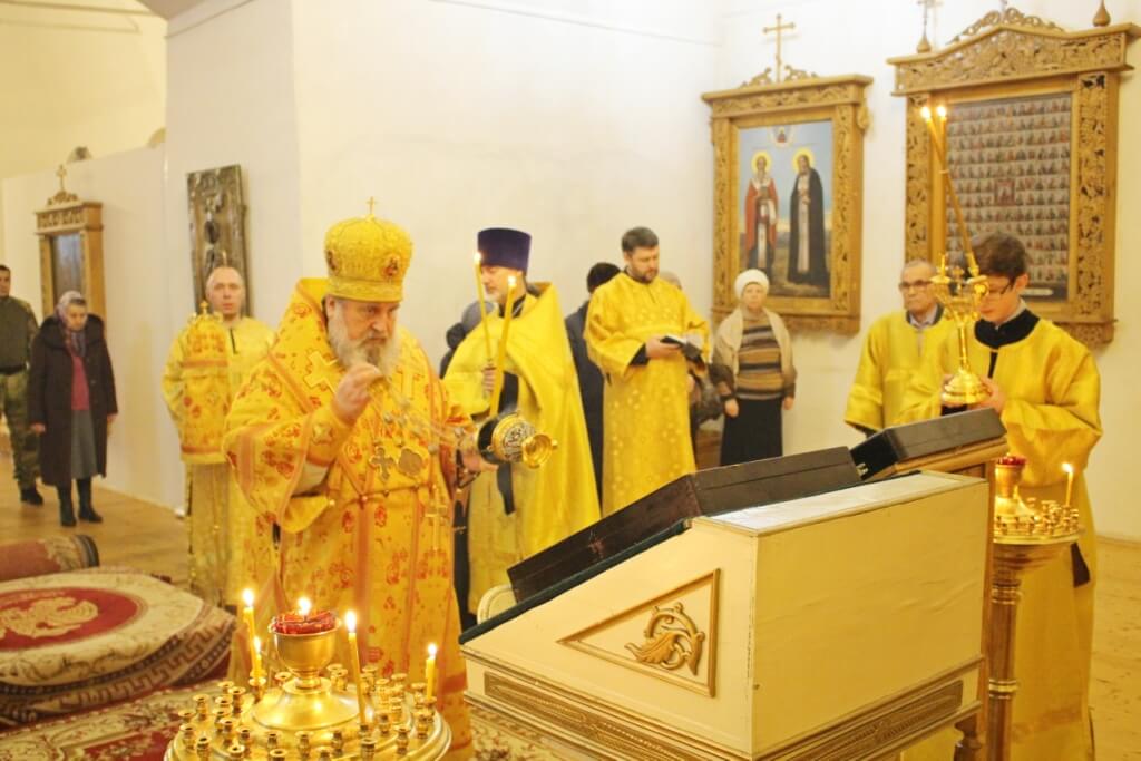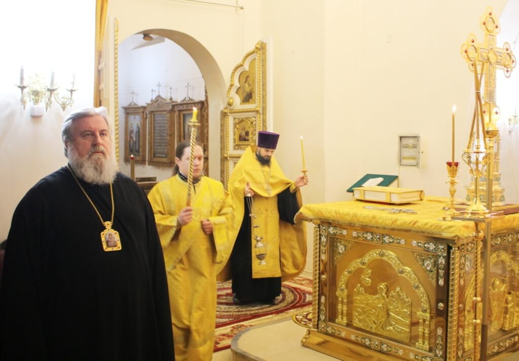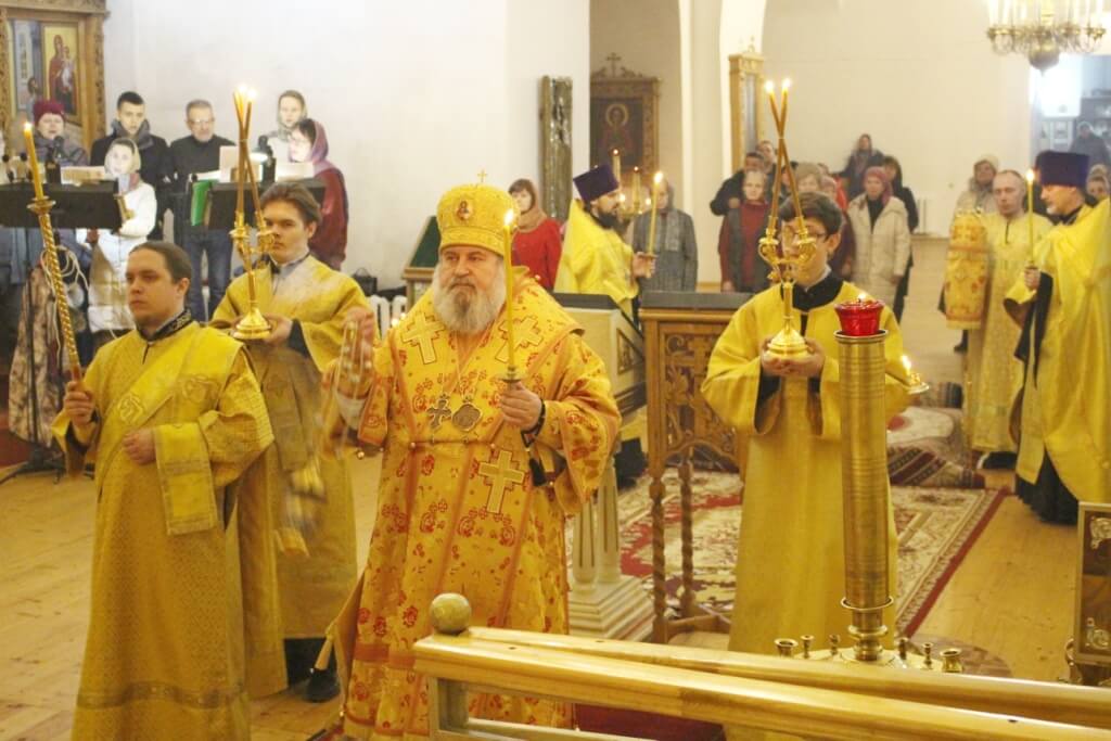 Правящему Архиерею сослужили: настоятель Свято-Троицкого кафедрального собора иерей Александр Курмелёв, клирик Свято-Троицкого кафедрального собора иерей Владимир Покатов.