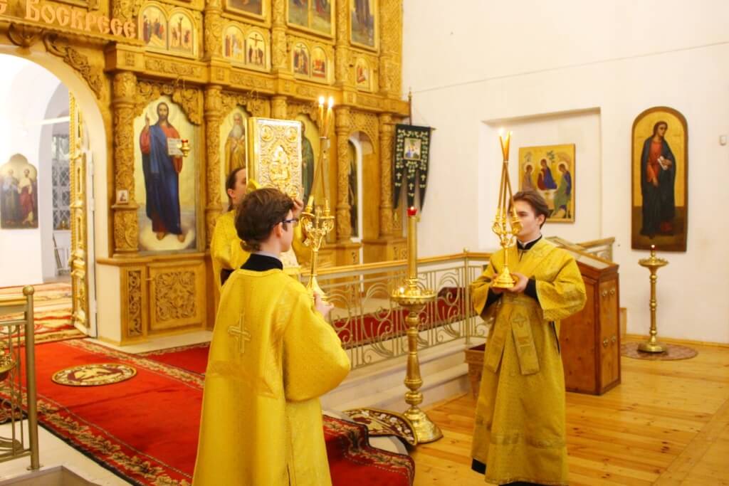Богослужебные песнопения исполнил хор Свято-Троицкого собора-регент Елена Платонова.