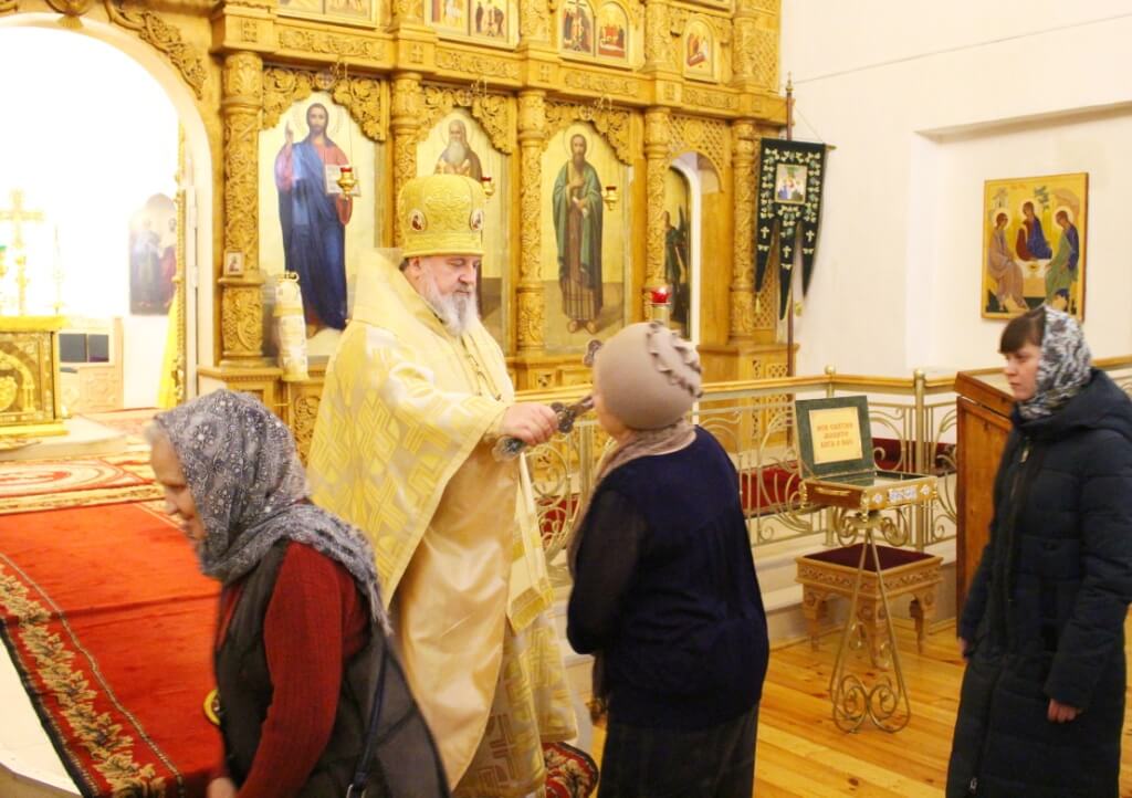 По завершении богослужения, Преосвященный епископ Сергий, обратился к молящимся с архипастырским словом, поздравив всех присутствующих на литургии с днём памяти Святителя Спиридона, епископа Тримифунтского, Чудотворца, и призвав на всех Божие благословение.