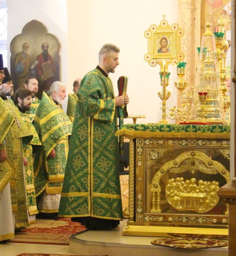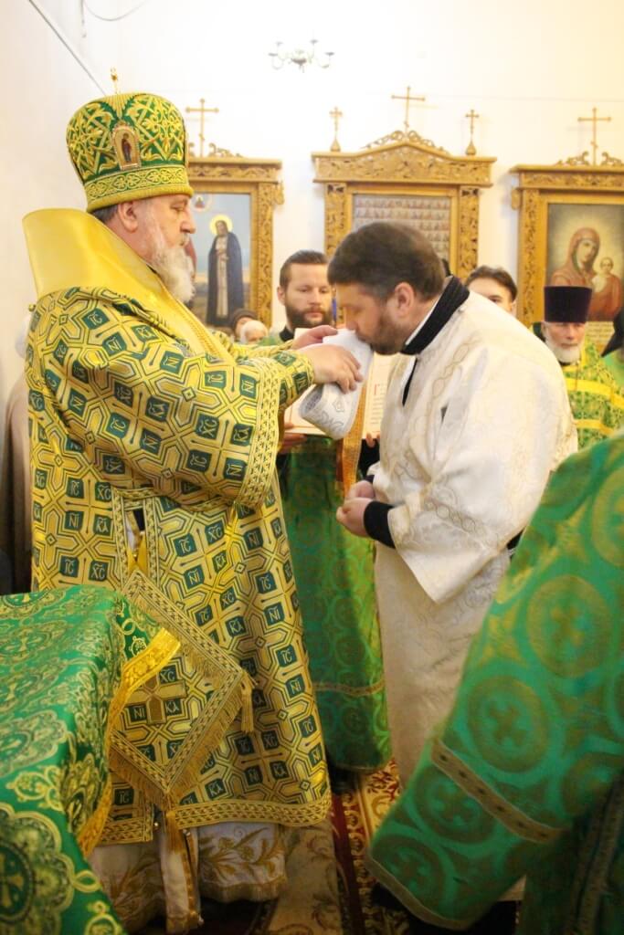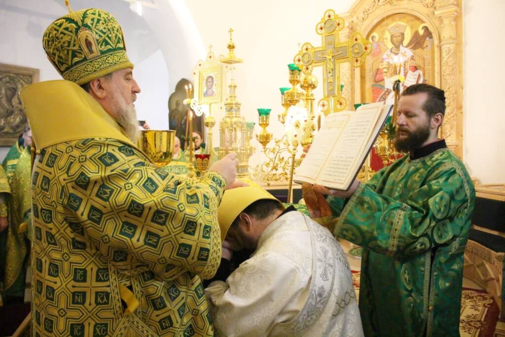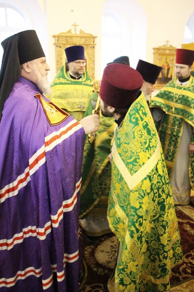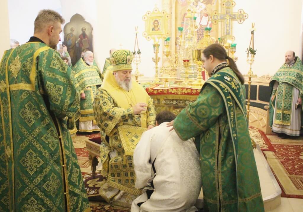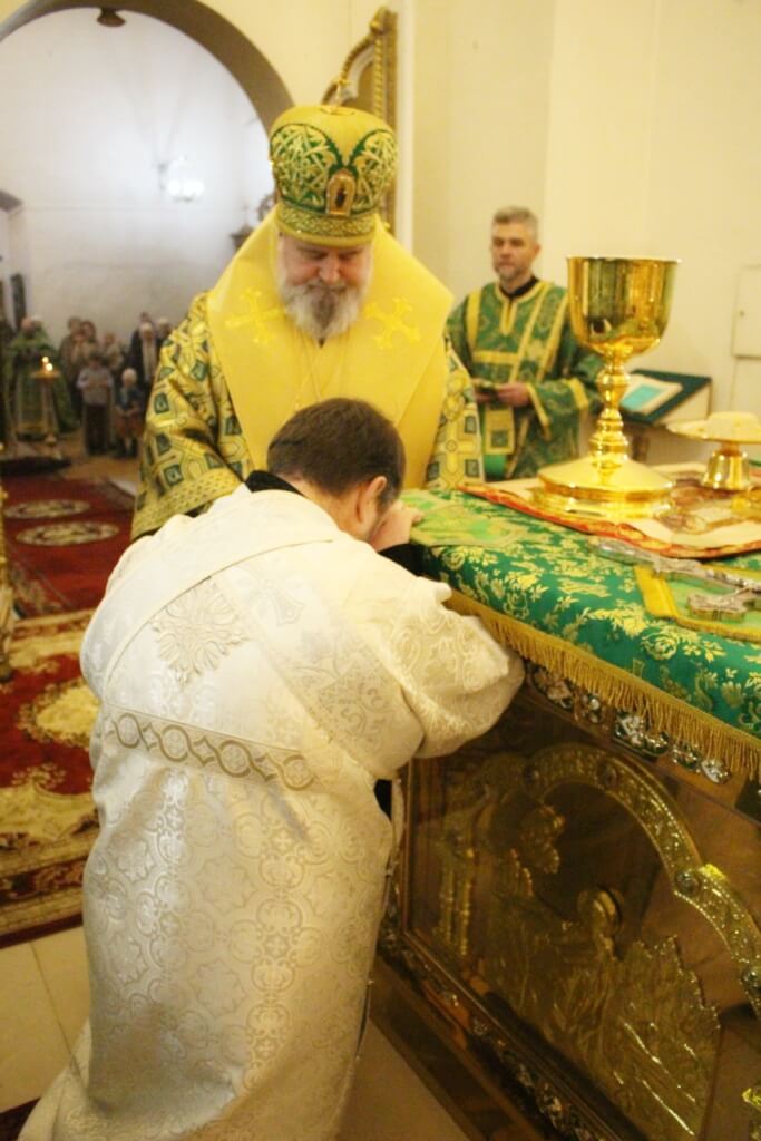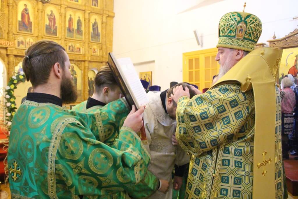 При пении антифонов Преосвященнейший Епископ Сергий совершил чин хиротесии Алексия Дубовского во иподиакона, а после Евхаристического канона владыка рукоположил означенного иподиакона Алексия во диакона.