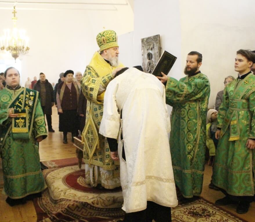 В завершении богослужения Епископ Сергий обратился к молящимся с архипастырским словом и поздравил духовенство, и всех молящихся за богослужением с днём памяти Преподобного Аркадия Вяземского.