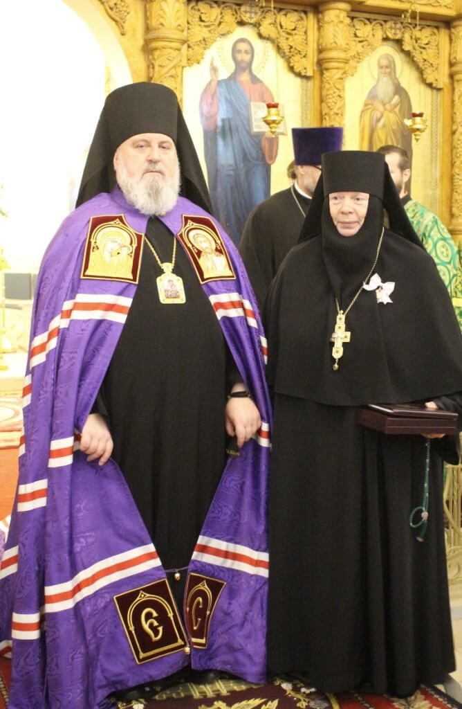 также Епископ Сергий вручил Патриаршую награду, за усердные труды на благо Святой Церкви и в связи с 75-ти летием со дня рождения игумению Ангелину (Нестерову)-Орденом Русской Православной Церкви преподобной Ефросинии, великой княгини Московской-3 степени.