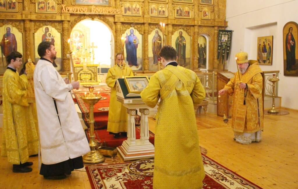 В завершении богослужения владыка Сергий совершил молитву перед чудотворным образом Божией Матери "Иверская".