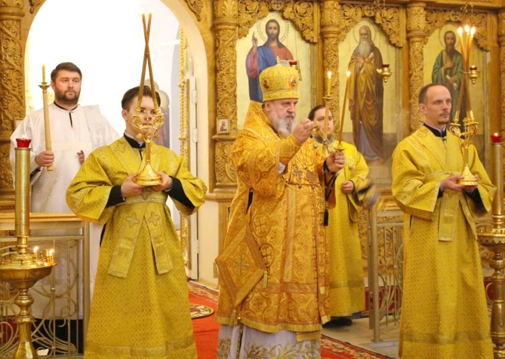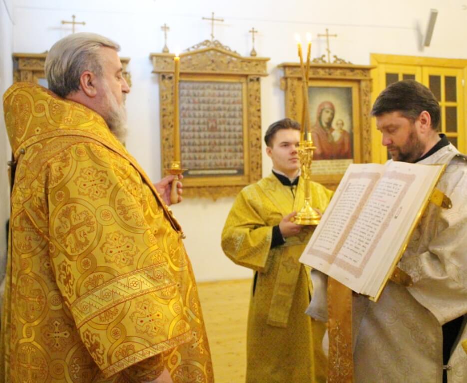 Правящему Архиерею сослужил: клирик Свято-Троицкого кафедрального собора иерей Владимир Покатов.