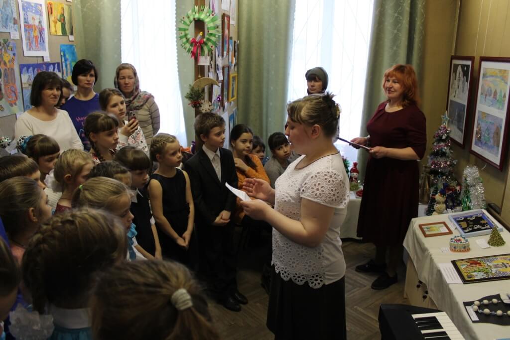 Открытие выставки прошло в праздничном духе Рождества. Вели мероприятие директор музея Советникова Е. И. и младший научный сотрудник Фомина Е. В. Перед собравшимися выступили детский хор Воскресной школы «Радуга» при Свято-Благовещенском храме под руководством регента Анастасии Чайкиной, исполнив композиции на французском языке, и младшая хоровая группа под руководством преподавателя Марины Перепелицы. Звучали и сольные произведения, для детей провели веселые конкурсы на знание праздника, гости , посетившие открытие выставки, узнали много интересных фактов о традициях и обычаях празднования Рождества на Руси.
