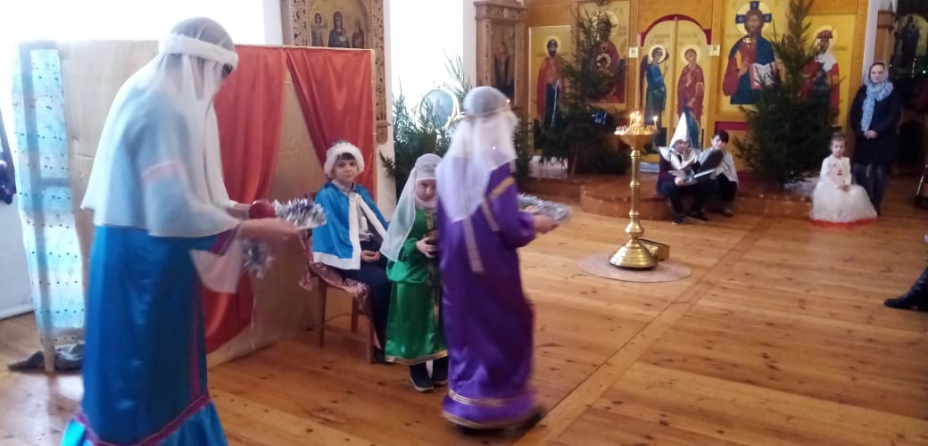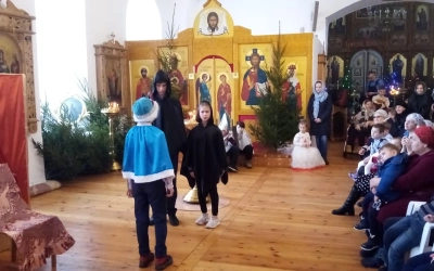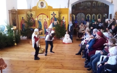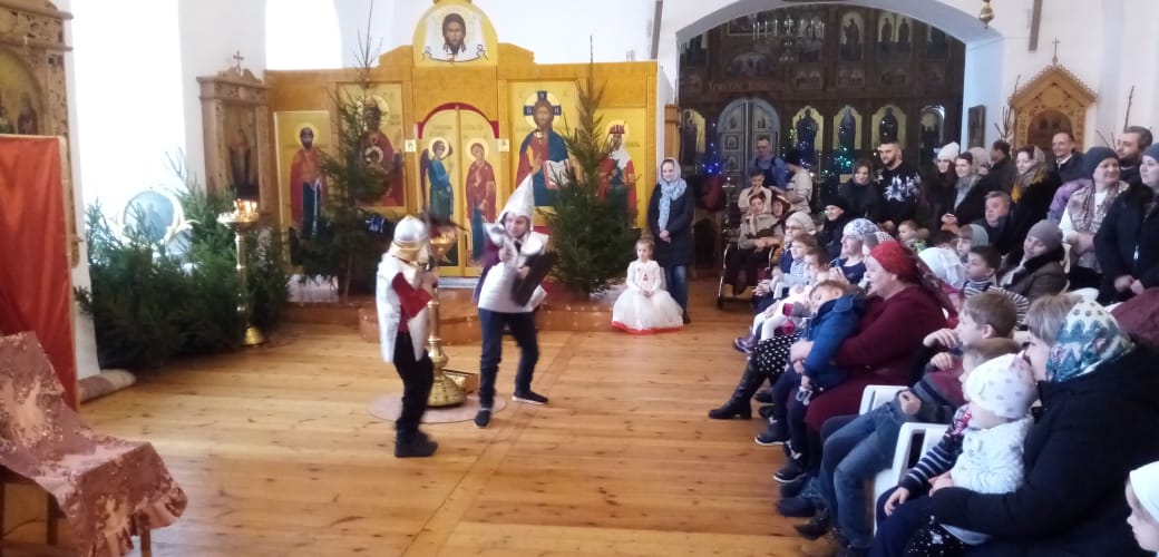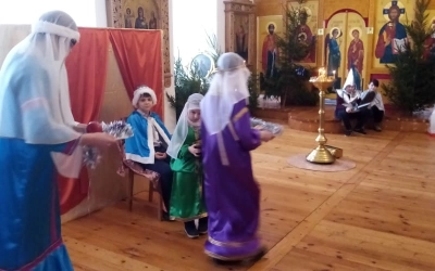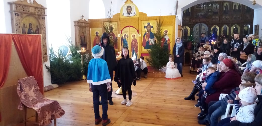 Праздник Рождества Христова – это всегда веселье, подарки, нарядная ёлка, колядки и, конечно, сказка. Зимняя русская сказка, порой очень знакомая с самого раннего детства. Настоящим подарком для всех от ребят воскресной школы стал рождественский спектакль по мотивам русской народной сказки «По щучьему велению», где главный герой в поисках счастья открывает для себя простую истину: «Пусть будет не так, как я хочу, а как Ты хочешь, Господи!». Украшением праздника стало исполнение песен детьми и взрослыми – родителями и преподавателями, а также чтение стихов, передающих радость о рождении Спасителя.