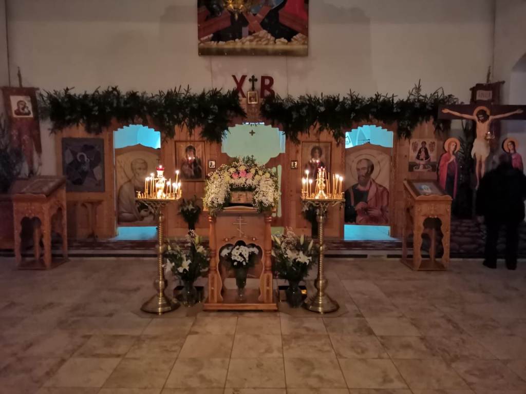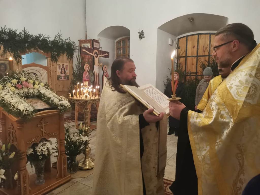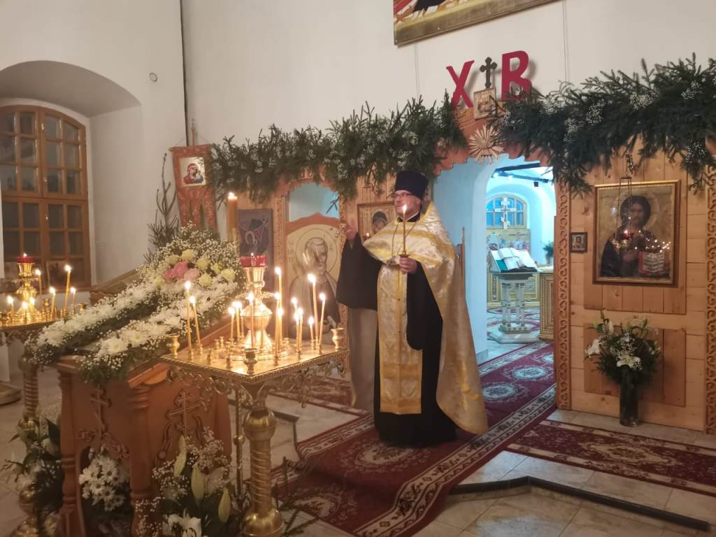 Накануне праздника прихожане благоукрасили храм цветами и елями, устроили Рождественский вертеп.