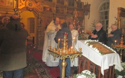 Несмотря на период глухозимья и ночное время суток, прихожане порадовали дружным участием в Божественной Литургии.