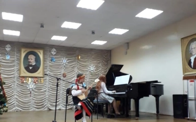 В праздничном концерте принимали участие учителя и ученики музыкальной школы. Исполнялись произведения русских композиторов посвященных Рождеству Христову а также Рождественские колядки и народные произведения.