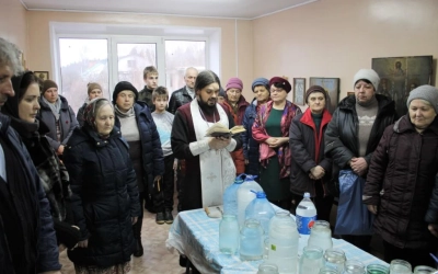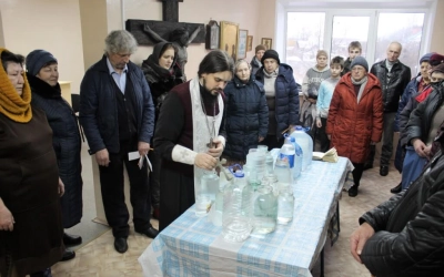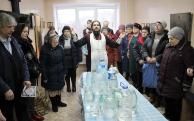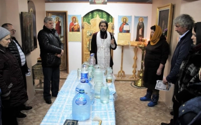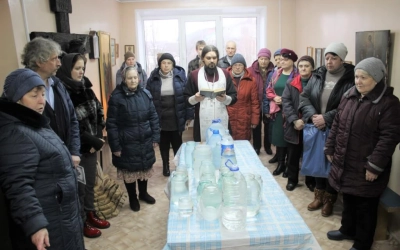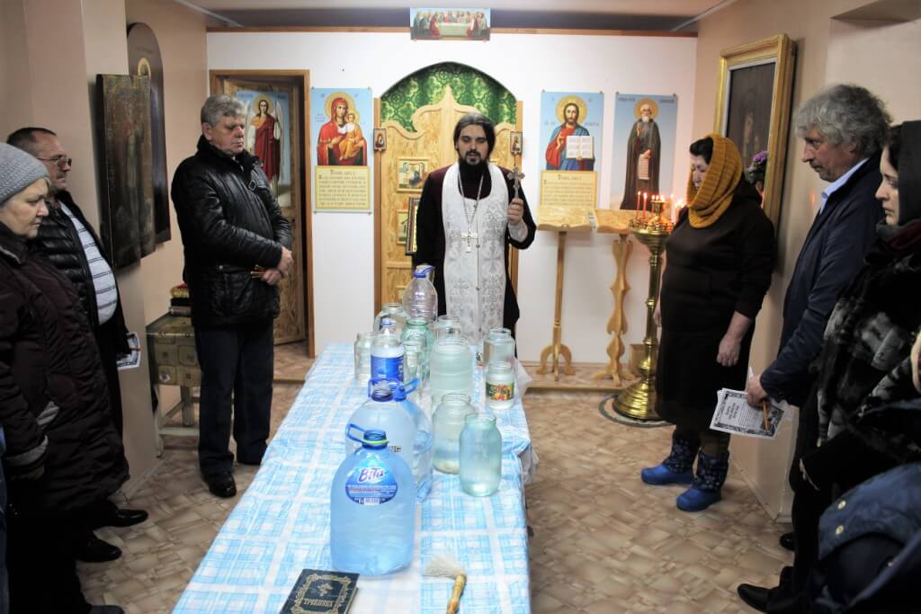 По окончанию Богослужения отец Александр окропил присутствующих святой водой.Поздравил всех со Светлым праздником Крещения Господня. Пожелал крепости духа, душевного спокойствия, помощи Божией и укрепления веры.