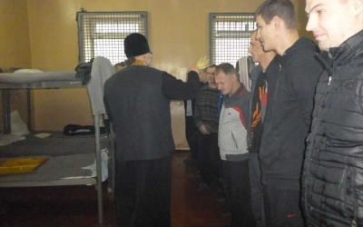 Настоятель храма в этот день посетил следственный изолятор, где по традиции окропил святой водой всех подследственных и все помещения.