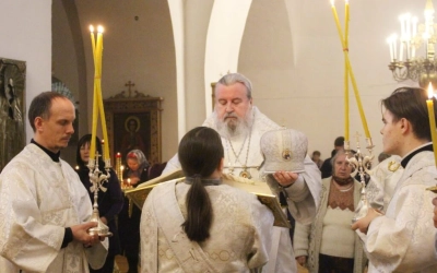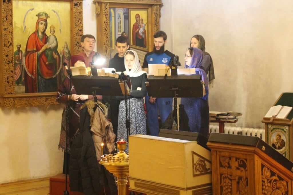Песнопения Всенощного бдения звучали в исполнении хора кафедрального собора-регент Елена Платонова.