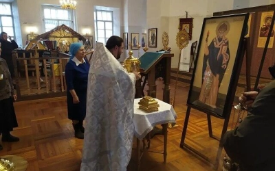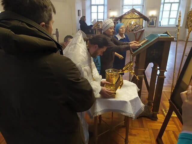 Отец Роман совершил молебен и все присутствующие приложились к ковчегам и иконам. После этого было совершено чтение акафистов.