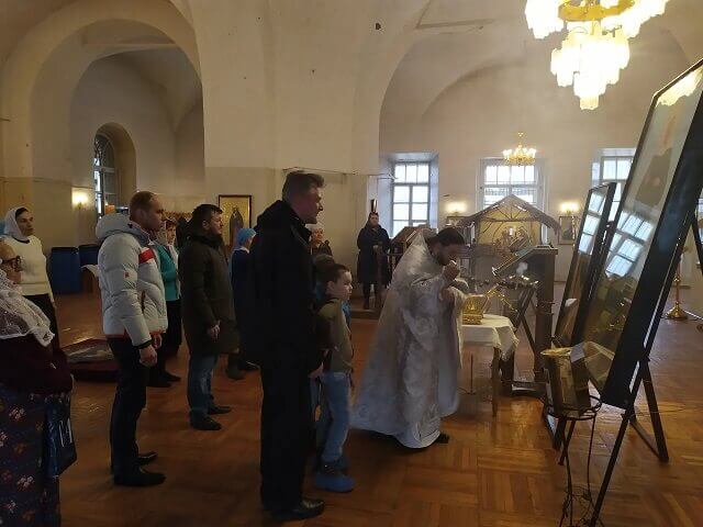 С радостью Святыни встретили иерей Роман Ступа и прихожане Тихвинского храма.