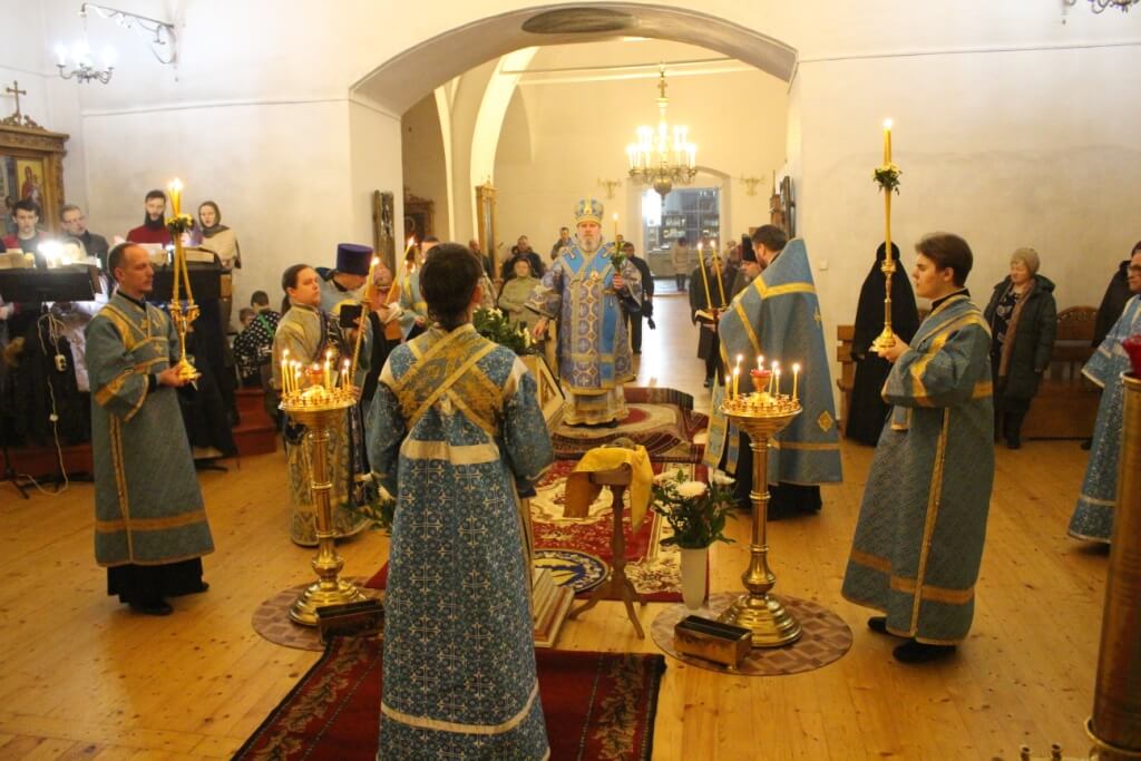 В завершении богослужения было совершено Величание по случаю двунадесятого праздника Сретения Господня.