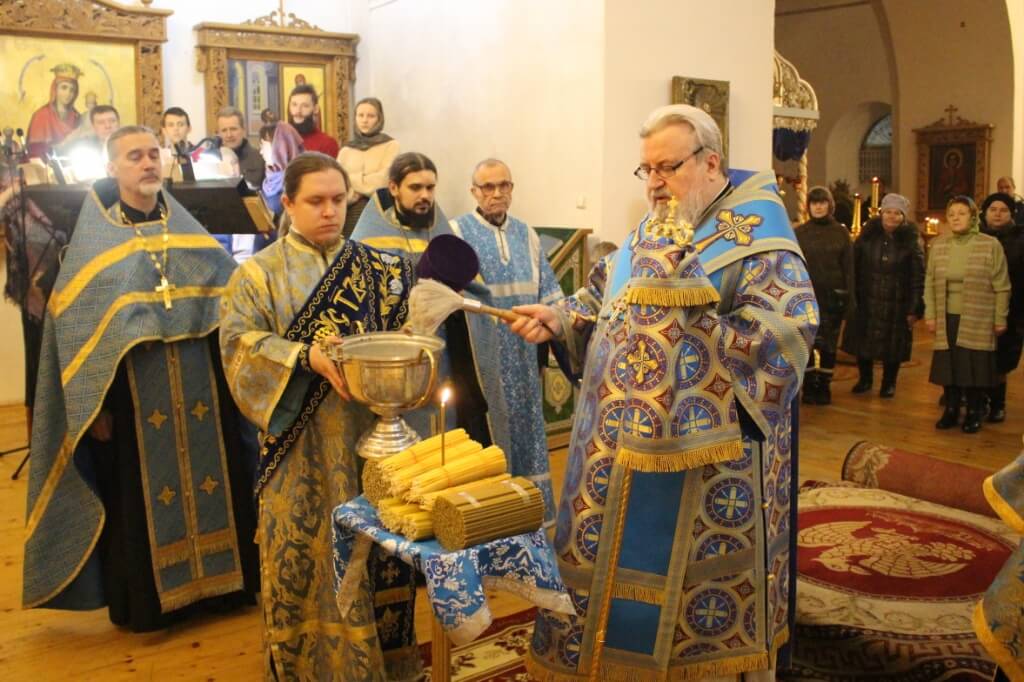 По прочтении Евангелия правящий архиерей совершил чин освящения Сретенских свечей.