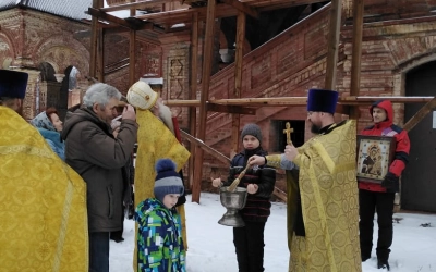Закончилось все Крестным ходом вокруг храма и межприходской братской трапезой.