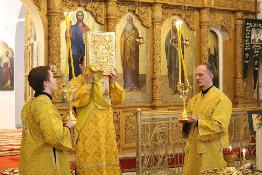 По прочтении Евангелия соборный хор исполнил песнопение «Покаяния отверзи ми двери, Жизнодавче», которое будет звучать за богослужением в течение подготовительных к Посту седмиц и самой Святой Четыредесятницы.