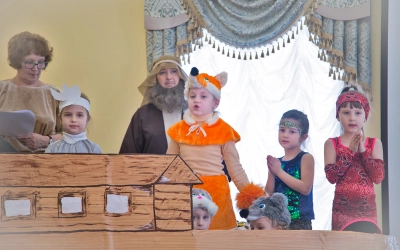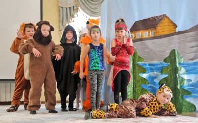 Затем зрителям был представлен спектакль, подготовленный коллективом педагогов и детей МДОУ детский сад №10 г. Вязьмы под названием "Ноев ковчег". Дети в образе животных и птиц поведали историю Великого потопа. Но главная тема постановки - смирение, терпение и любовь, которые приводят к счастью и помогают выжить в самых трудных обстоятельствах.
