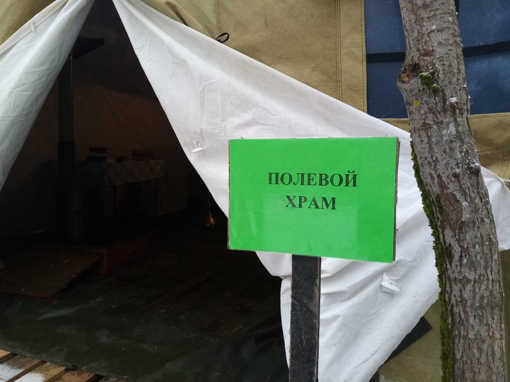 На учениях был развернут полевой храм-часовня, где была совершена Божественная литургия и другие службы.