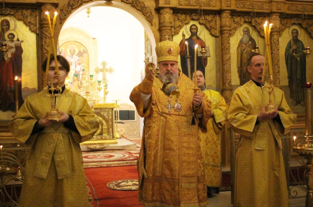 Его Преосвященству сослужили настоятель Свято-Троицкого кафедрального собора иерей Александр Курмелёв и духовенство собора.