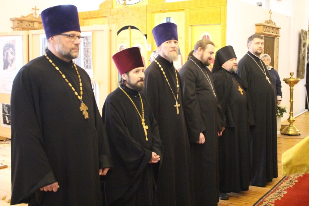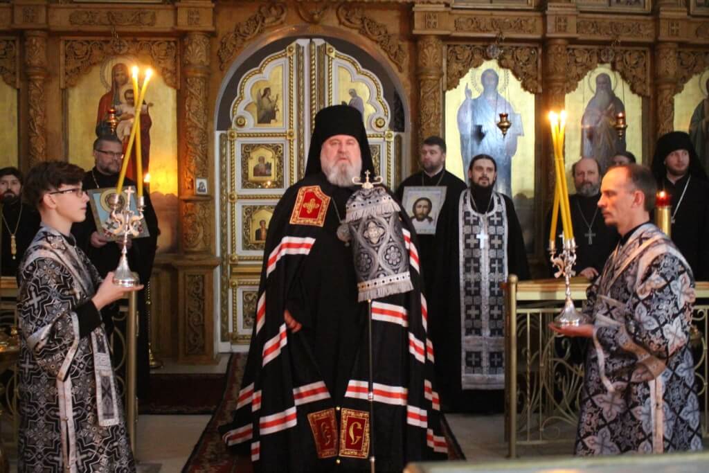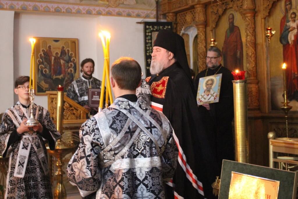 После пения великого прокимна и закрытия Царских врат епископ Сергий и духовенство переоблачились в великопостные черные ризы.