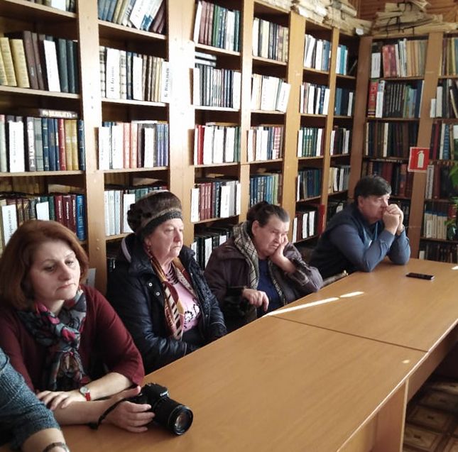 После круглого стола гости не спешат расходиться. Директор библиотеки Наталья Валерьевна Деенкова познакомила с книжным обзором и новинками литературы по теме. Библиотекарь Татьяна Алексеевна Карнаушенкова рассказала о книжном фонде православной кафедры. Здесь есть книги, журналы принесенные в дар жителями и гостями нашего посёлка.