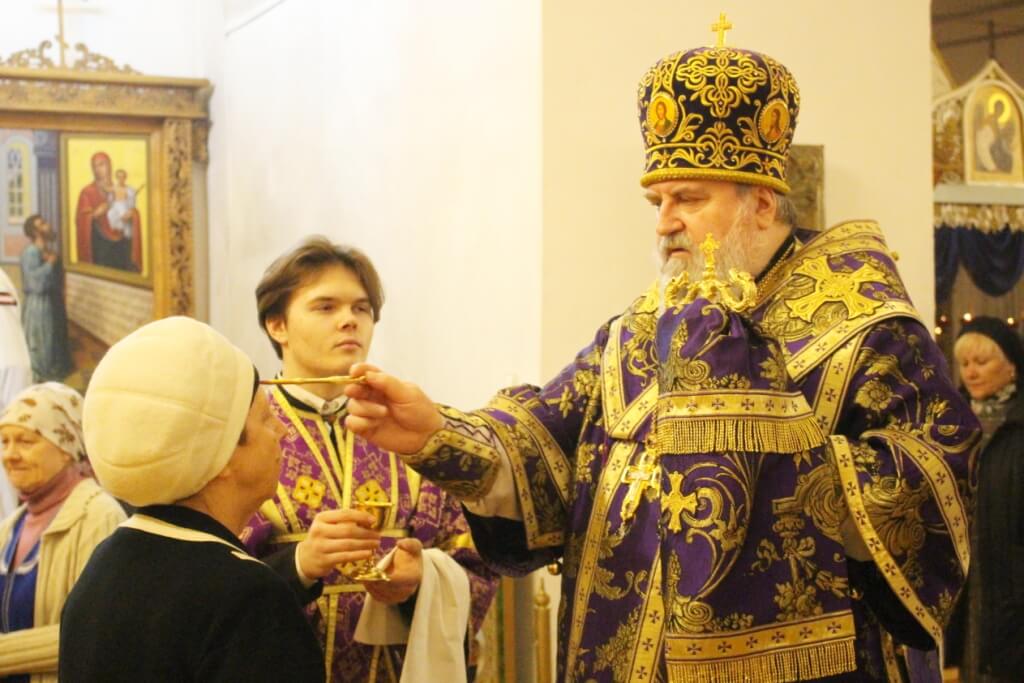 Во время пения канона архипастырь помазывал молящихся освященным елеем.