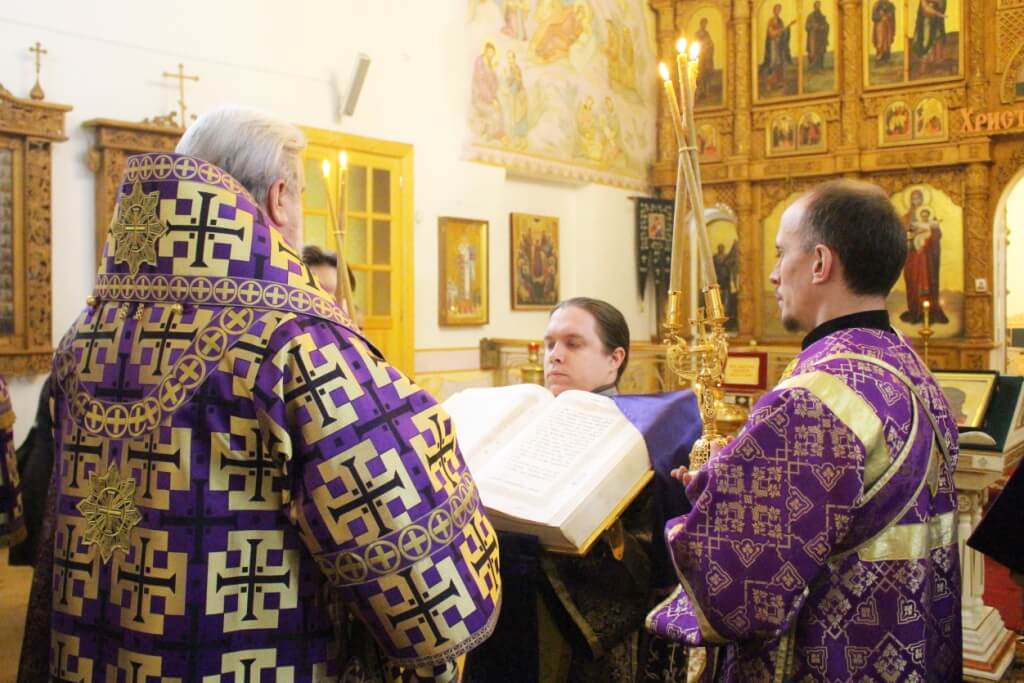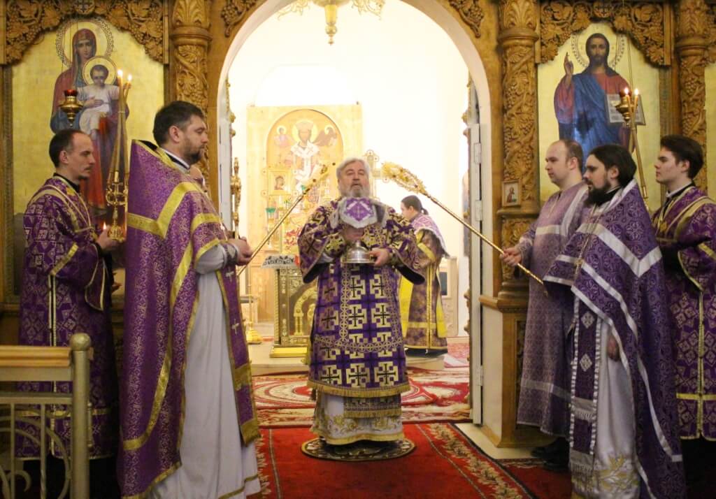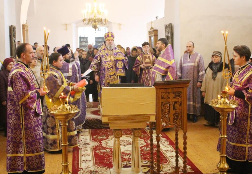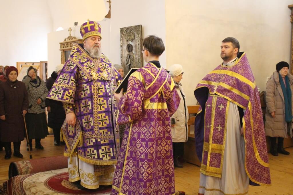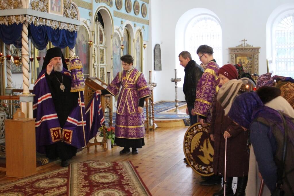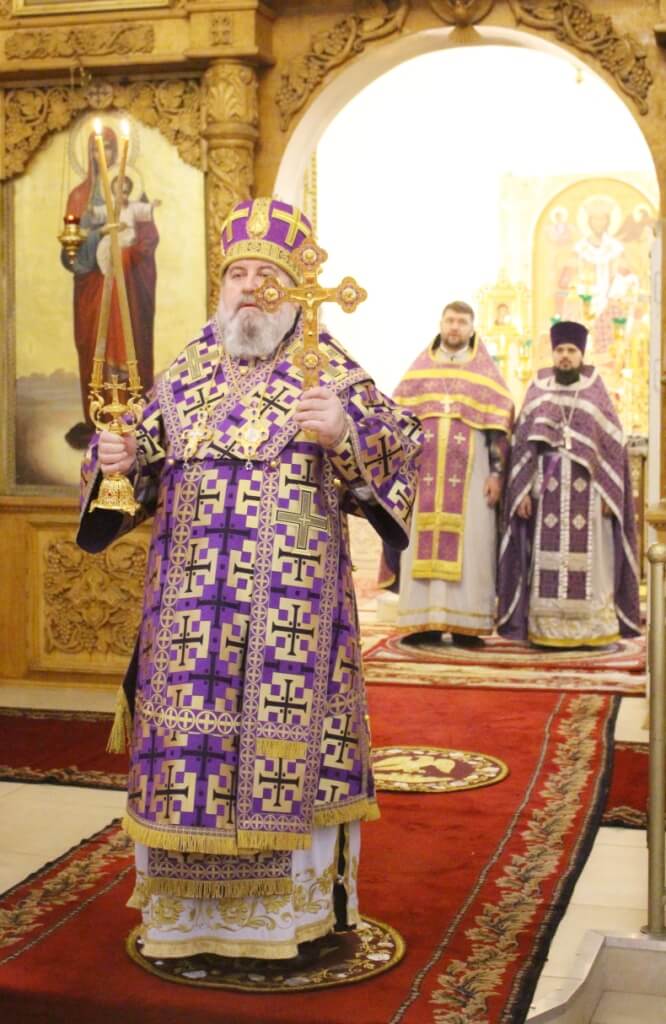 Преосвященнейший епископ Сергий поздравил всех молящихся в храме с днем Торжества Православия и празднованием первого и второго обретения главы пророка Предтечи и Крестителя Господня Иоанна.