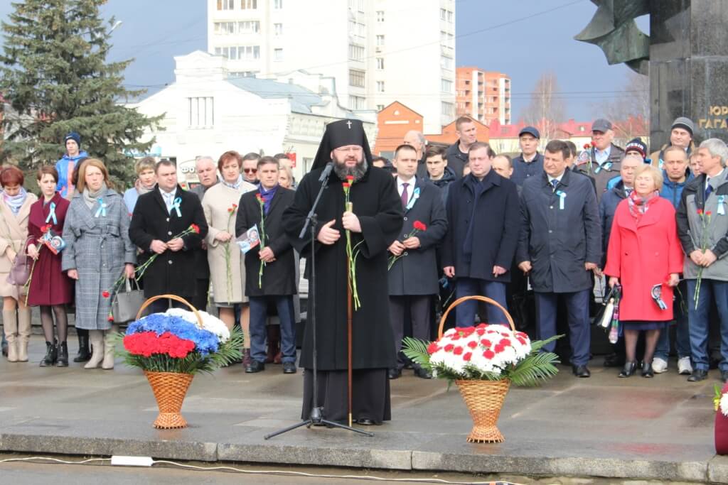 "Глубокоуважаемые ветераны отечественной космонавтики, уважаемые действующие космонавты, глубокоуважаемый Игорь Васильевич, глубокоуважаемые владыка Исидор и владыка Сергий, дорогие гости и жители города Гагарин.