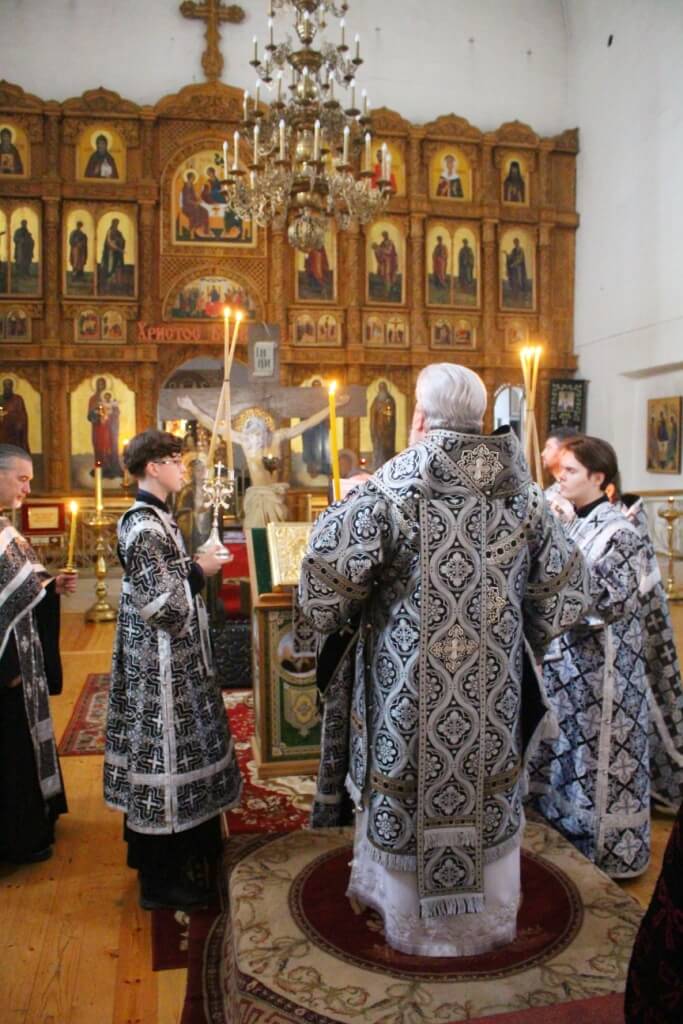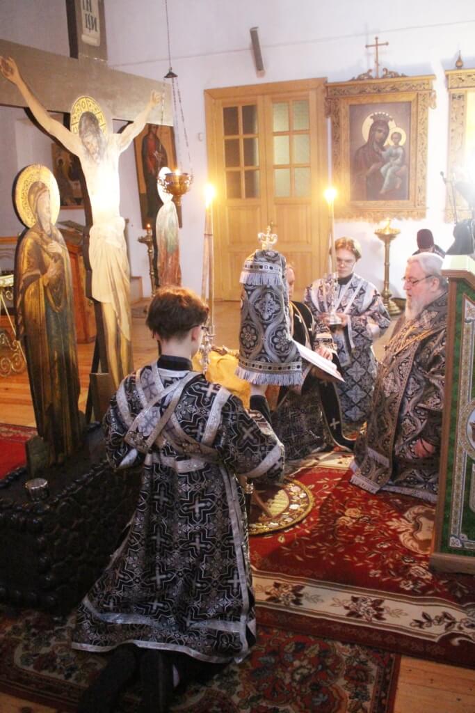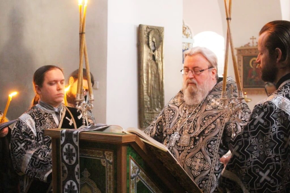Епископу Сергию сослужило духовенство Троицкого собора.