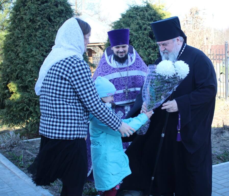По завершении богослужения Епископ Сергий обратился к присутствующим в храме с архипастырским словом, поздравив духовенство и прихожан с 3-й Неделей Великого поста и днём памяти 40 мучеников Севастийских.
