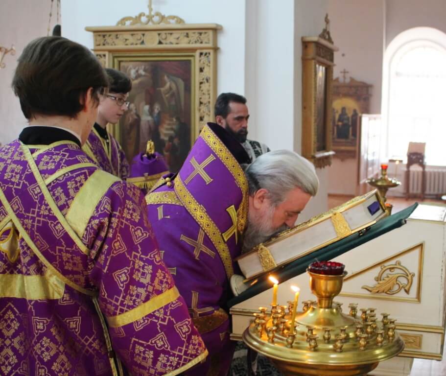 Во время пения канона архипастырь помазывал молящихся освященным елеем.