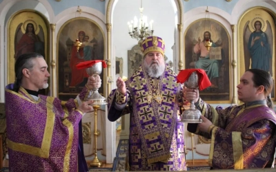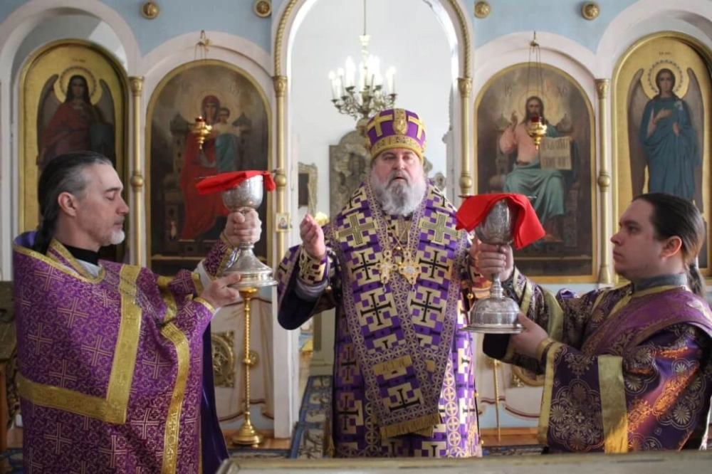 На сугубой ектении прозвучали прошения о единстве Православной Церкви и сохранении Церкви от разделений и расколов, а также прозвучали прошения возносимые во время распространения вредоносного поветрия.