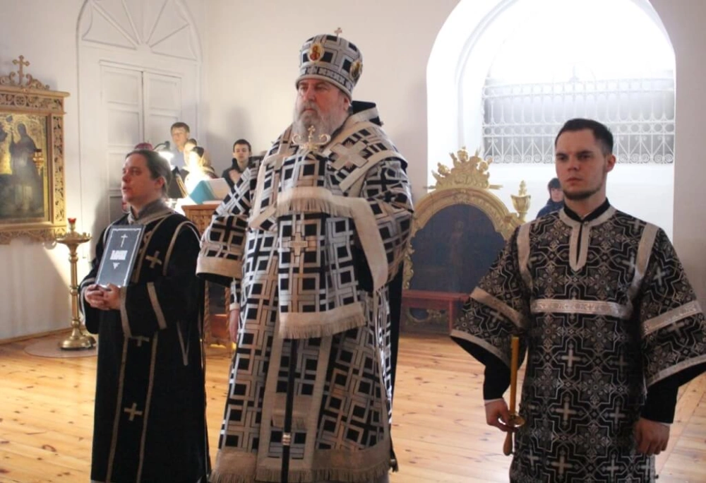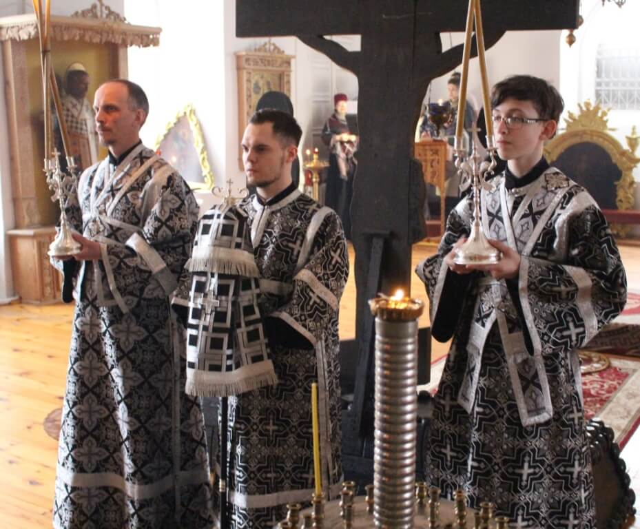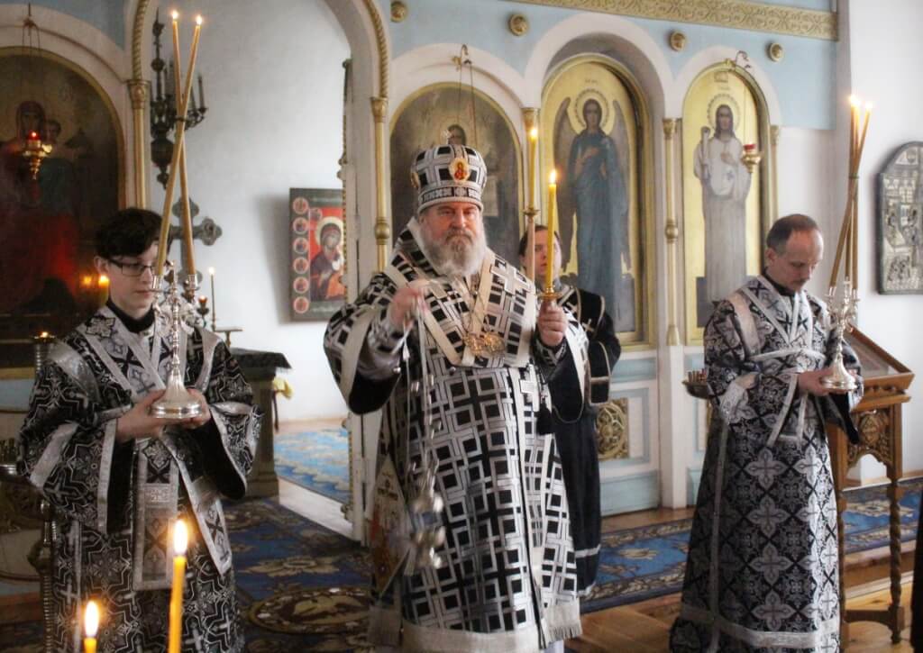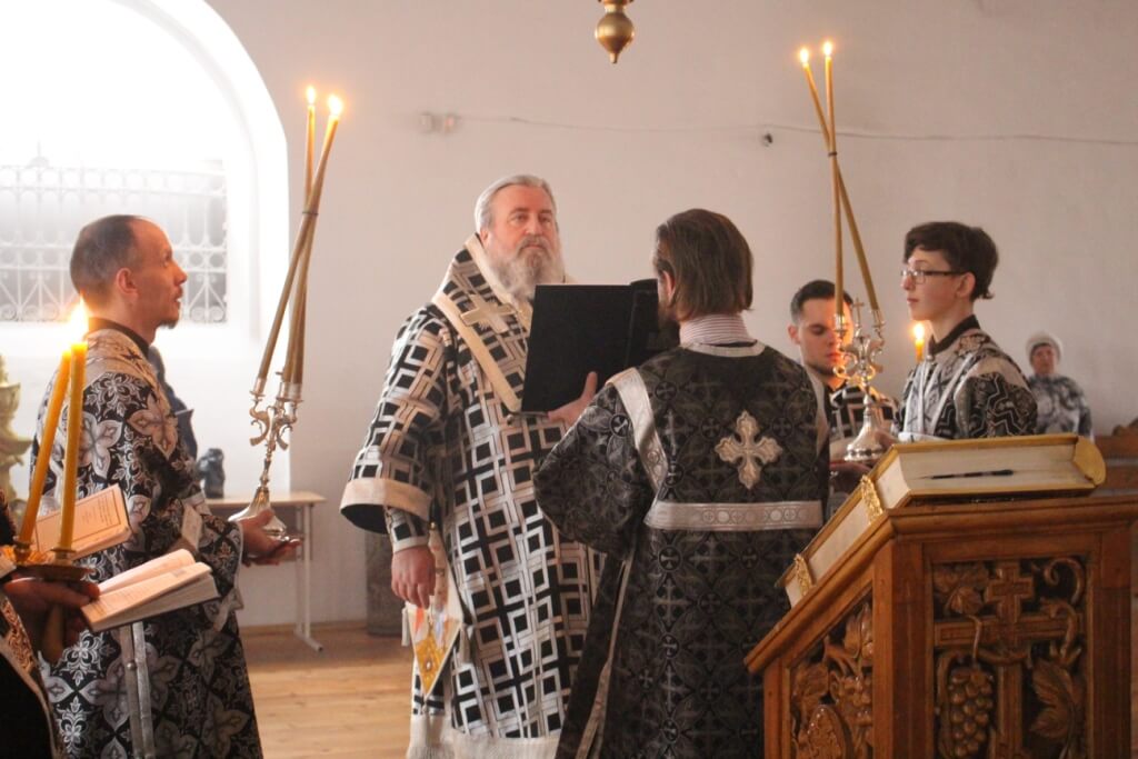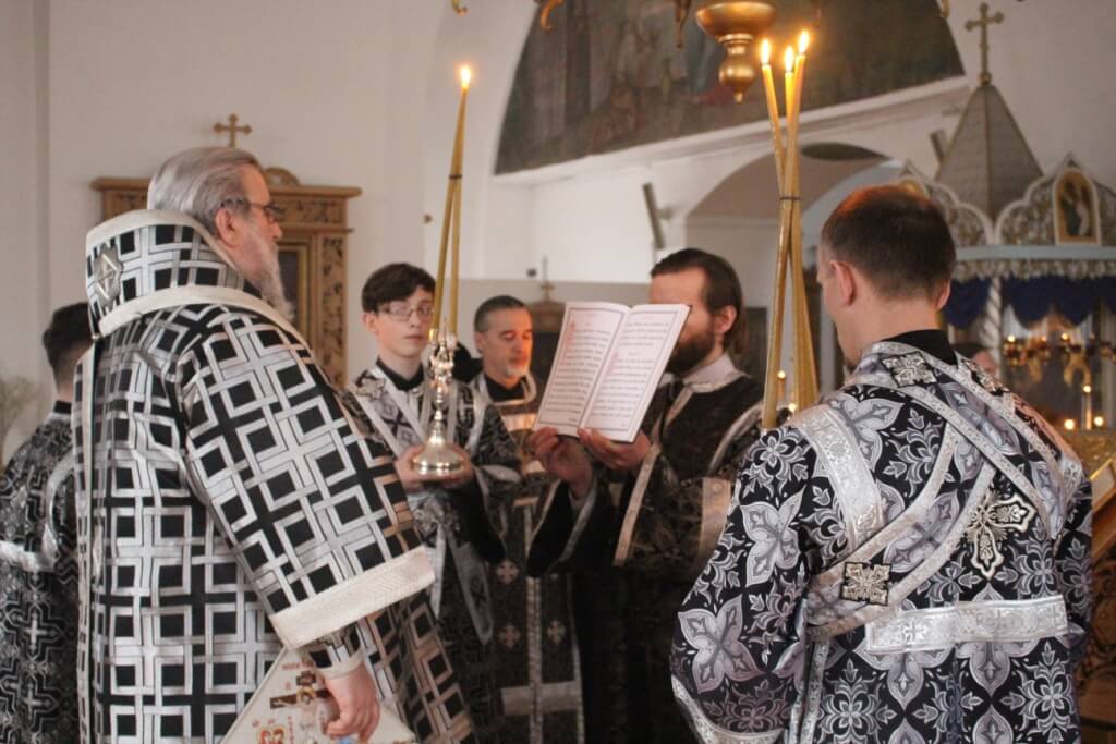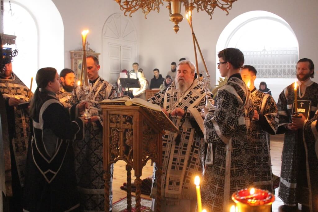 За вечернем богослужением Его Преосвященству сослужили клирики кафедрального храма.
