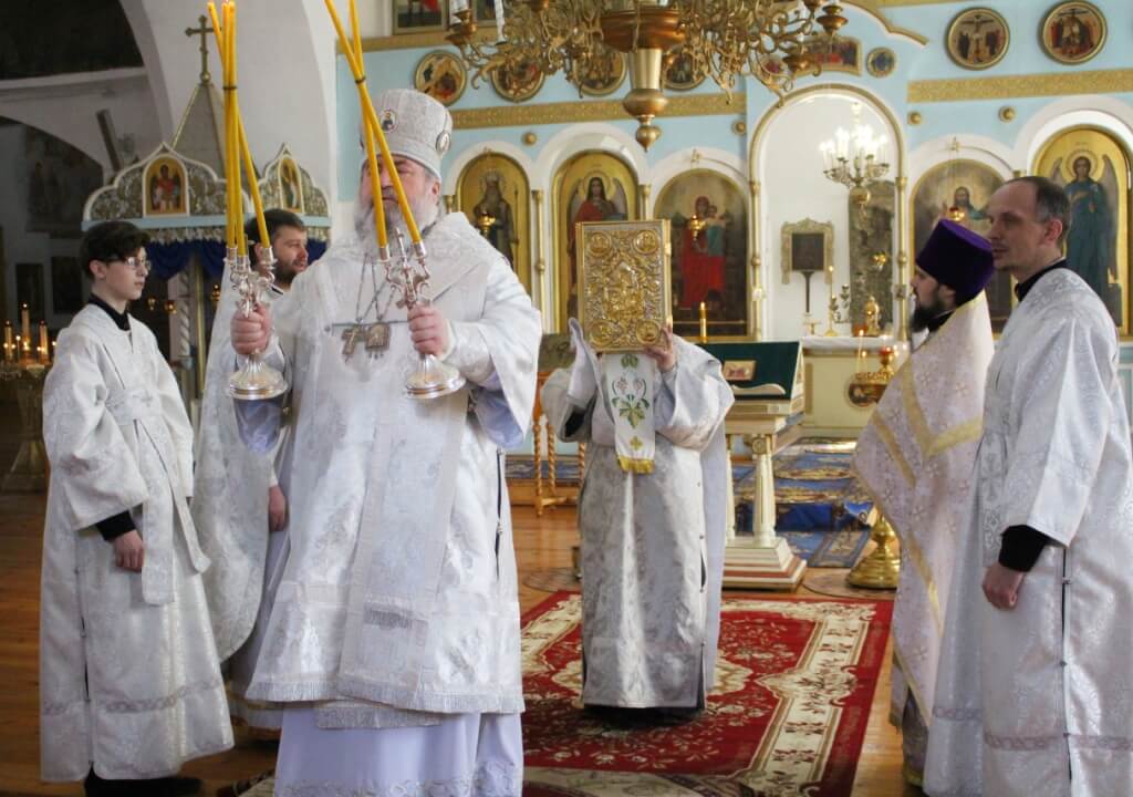 По завершении богослужения Епископ Сергий обратился к присутствующим в храме с архипастырским словом, поздравив духовенство и прихожан с днём памяти Воскрешения прав. Ла́заря.