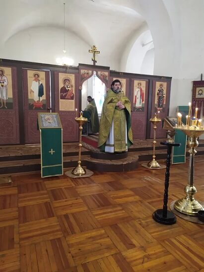 Богослужение совершил благочинный Гагаринского округа игумен Александр (Карпиков) в сослужении иерея Романа (Ступы) и диакона Димитрия Прусова.