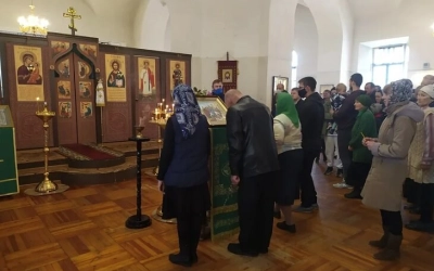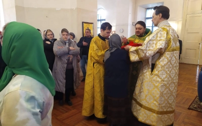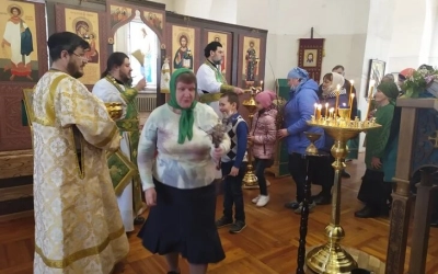 В этот день многие прихожане приняли участие в принятии Евхаристических Даров, а после пастырского слова игумена Александра подошли за благословением и окроплением святой водой.
